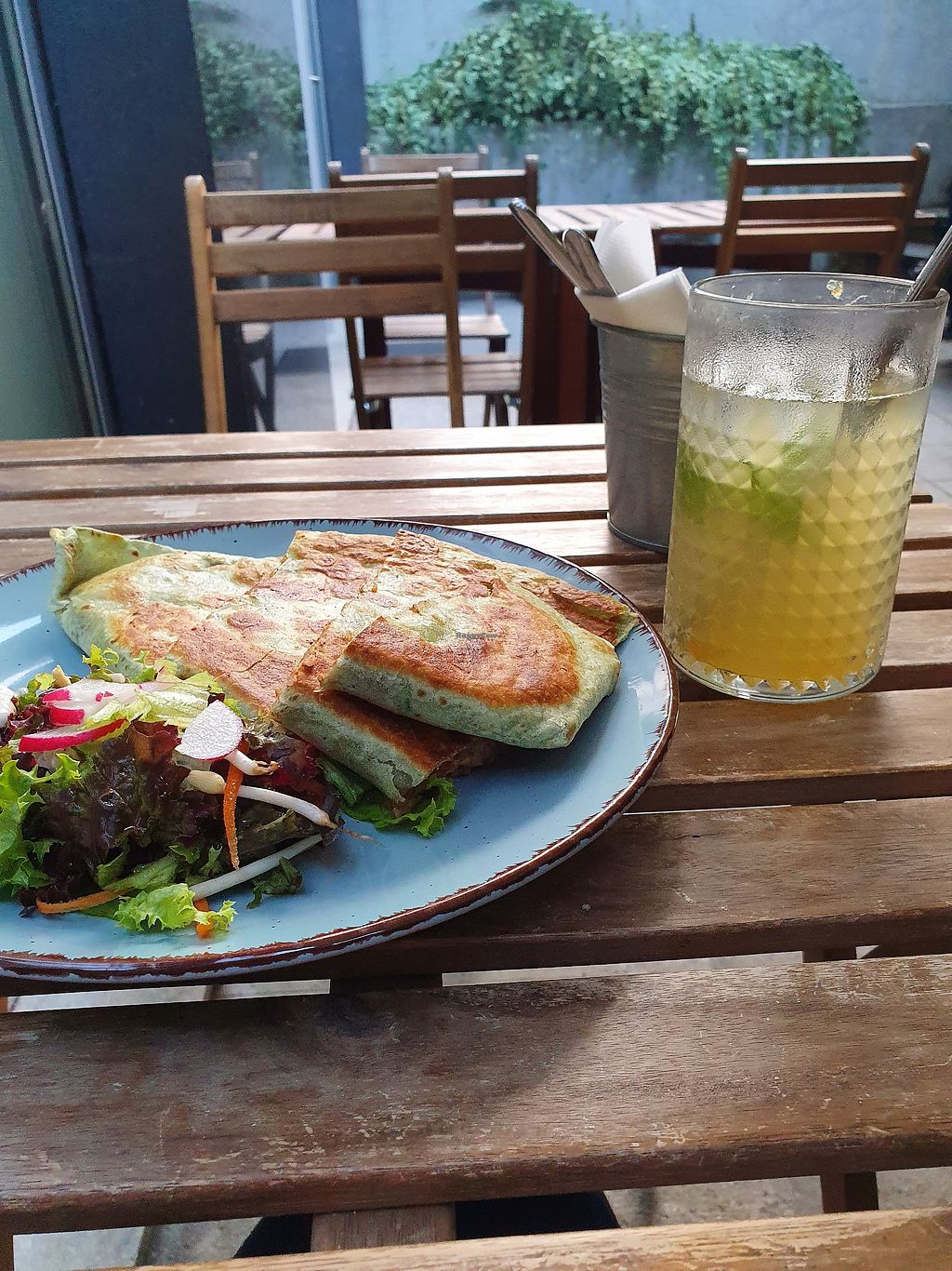 I had the quesadilla and the homemade lemonade. Both were delicious. The staff was very friendly. It was a great place to chill after a hot day in the city center.