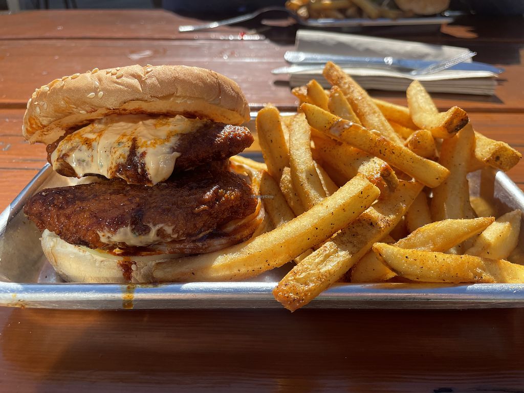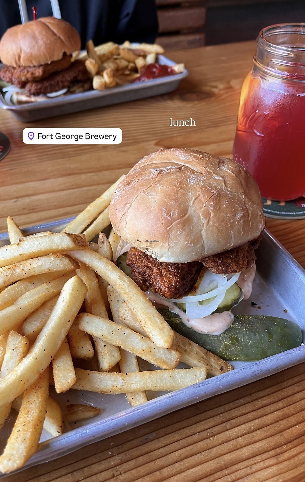 Vegan Nashville hot chicken and a Dakota Fanning (sprite and cranberry…