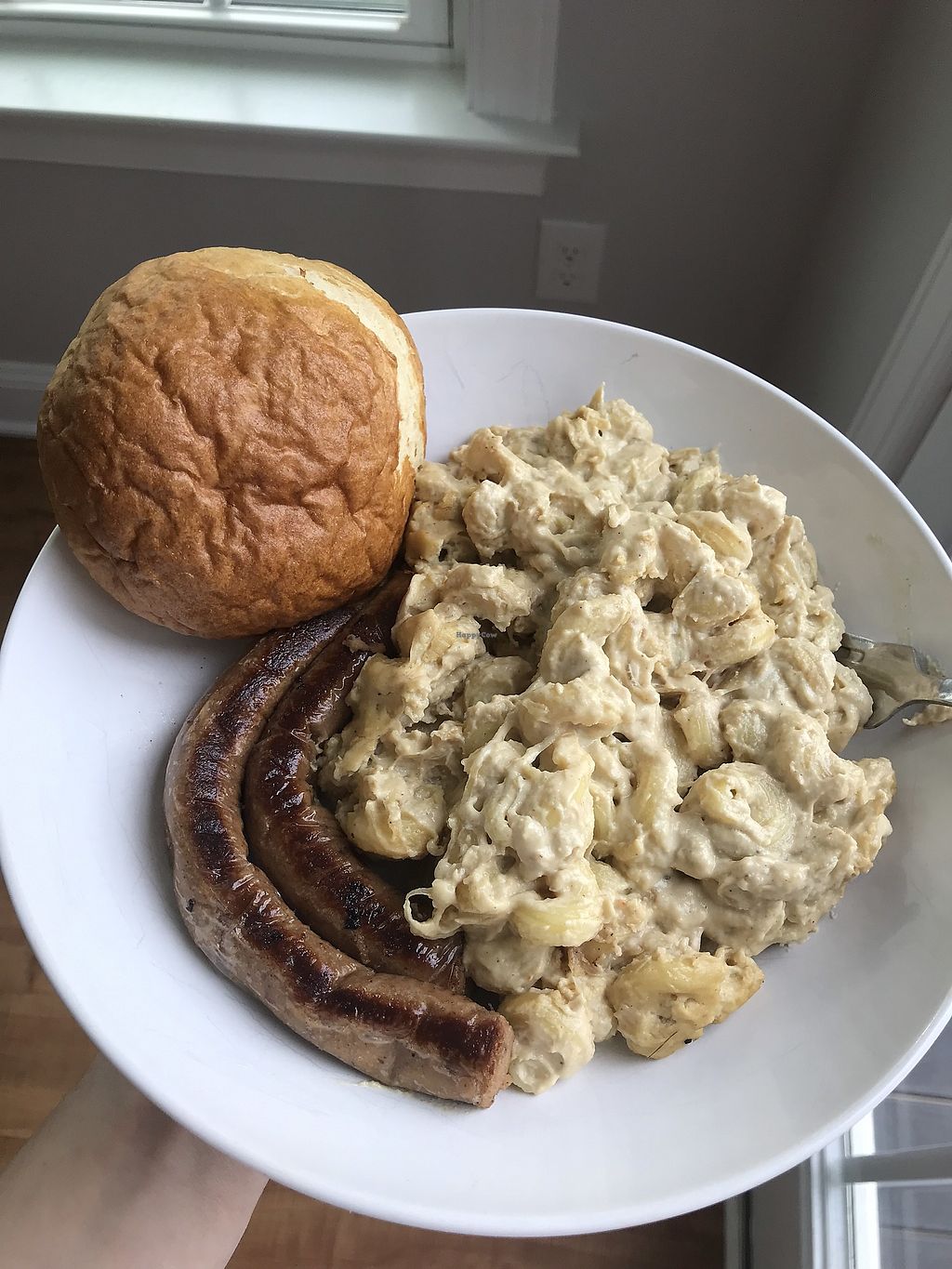 Mac&Cheese Wednesday special: beer and brat. Beer-infused cashew cream…