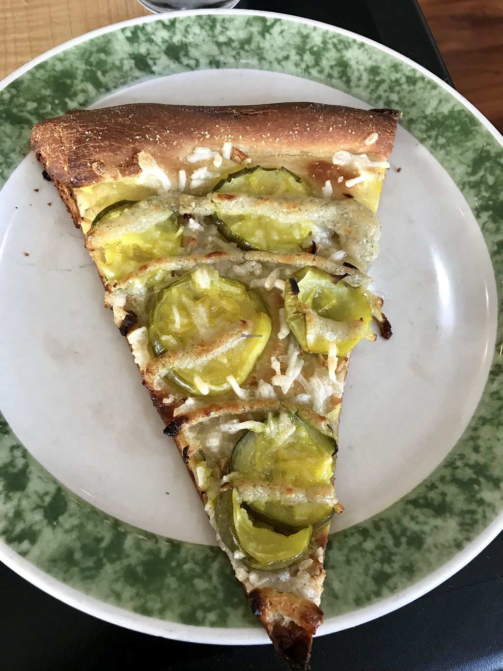 Thin-crust pickle pizza (mozarella, pickles, ranch drizzle). Amazing!!