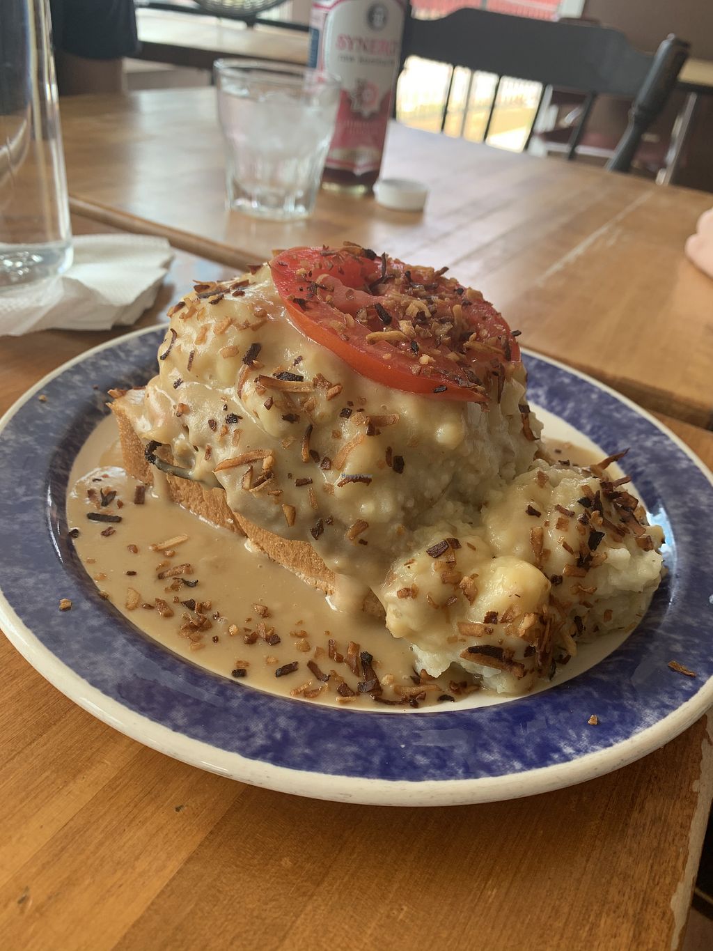 Fortuitea - Open faced meatloaf and gravy sandwich