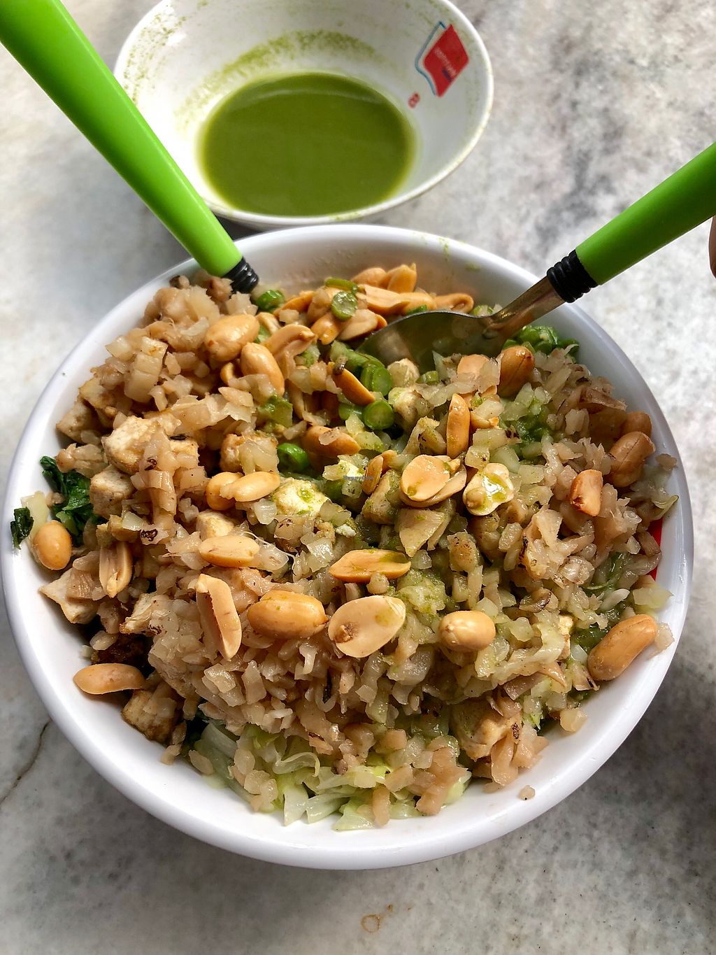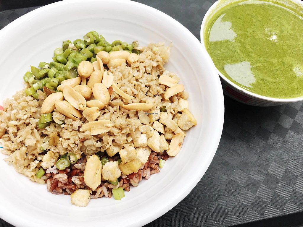 $4.50 Leicha: You can choose to have it with brown rice or white rice, toppings include tofu, long beans, peanuts and preserved radish aka caipoh.
