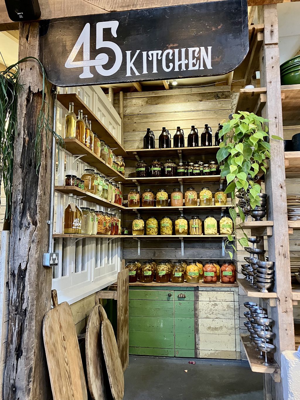 There is a bar and small deli shop and bakery you can browse. Great atmosphere inside with an open kitchen.