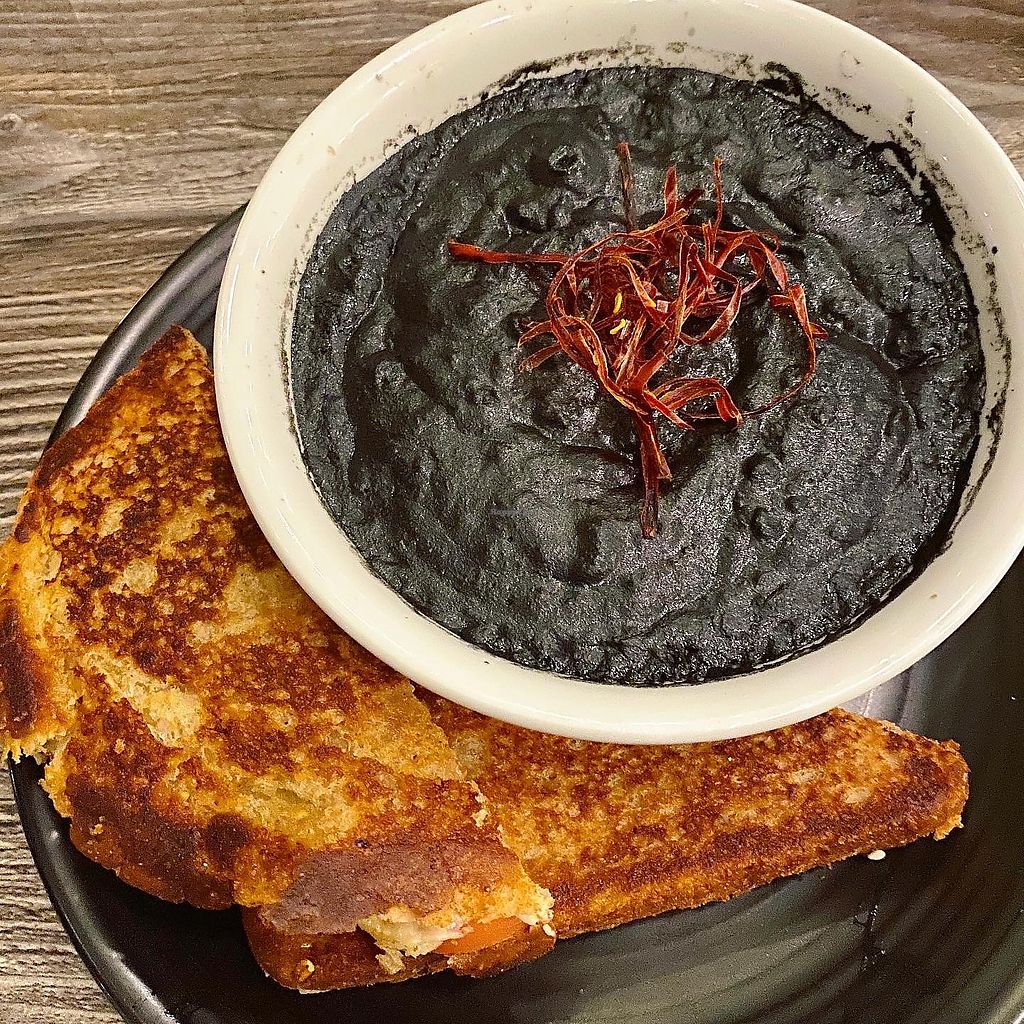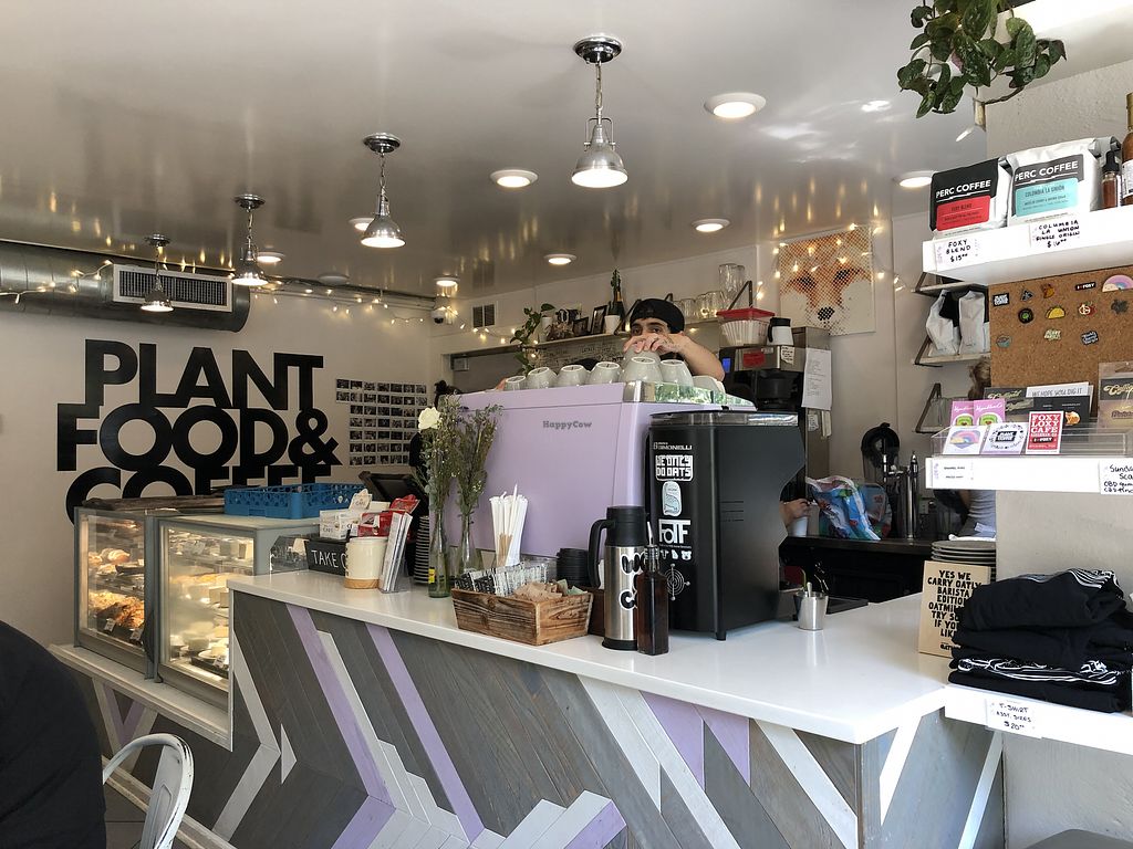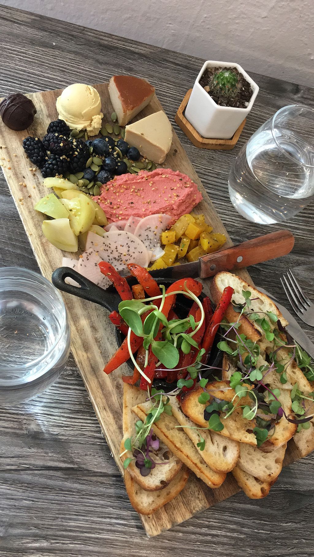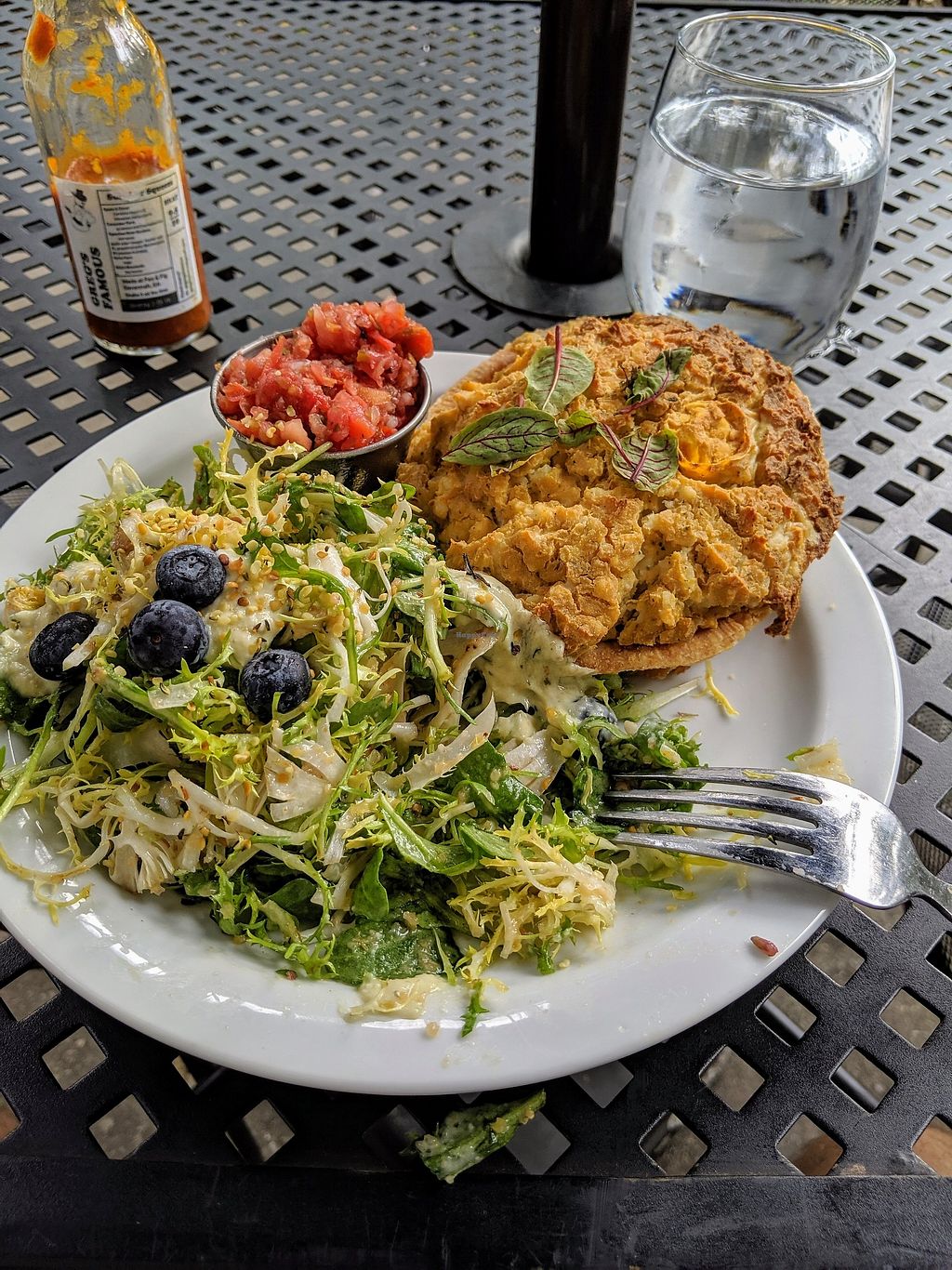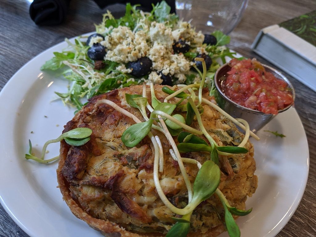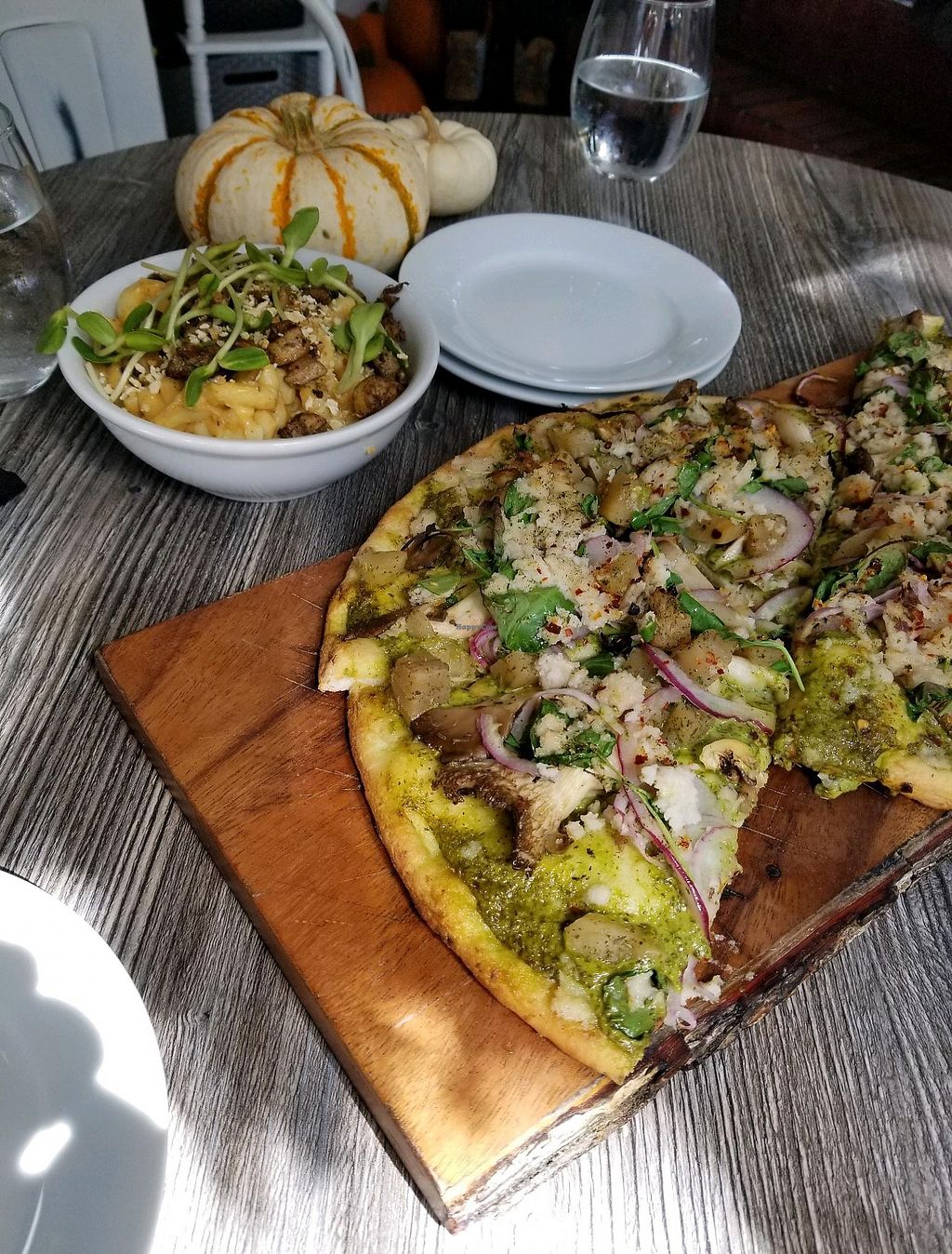 Amazing lunch! The beyond burger and pizza with lavender Marsala sauce…
