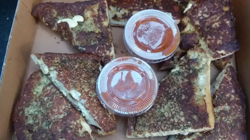 Cashew cheese garlic bread with marinara sauce