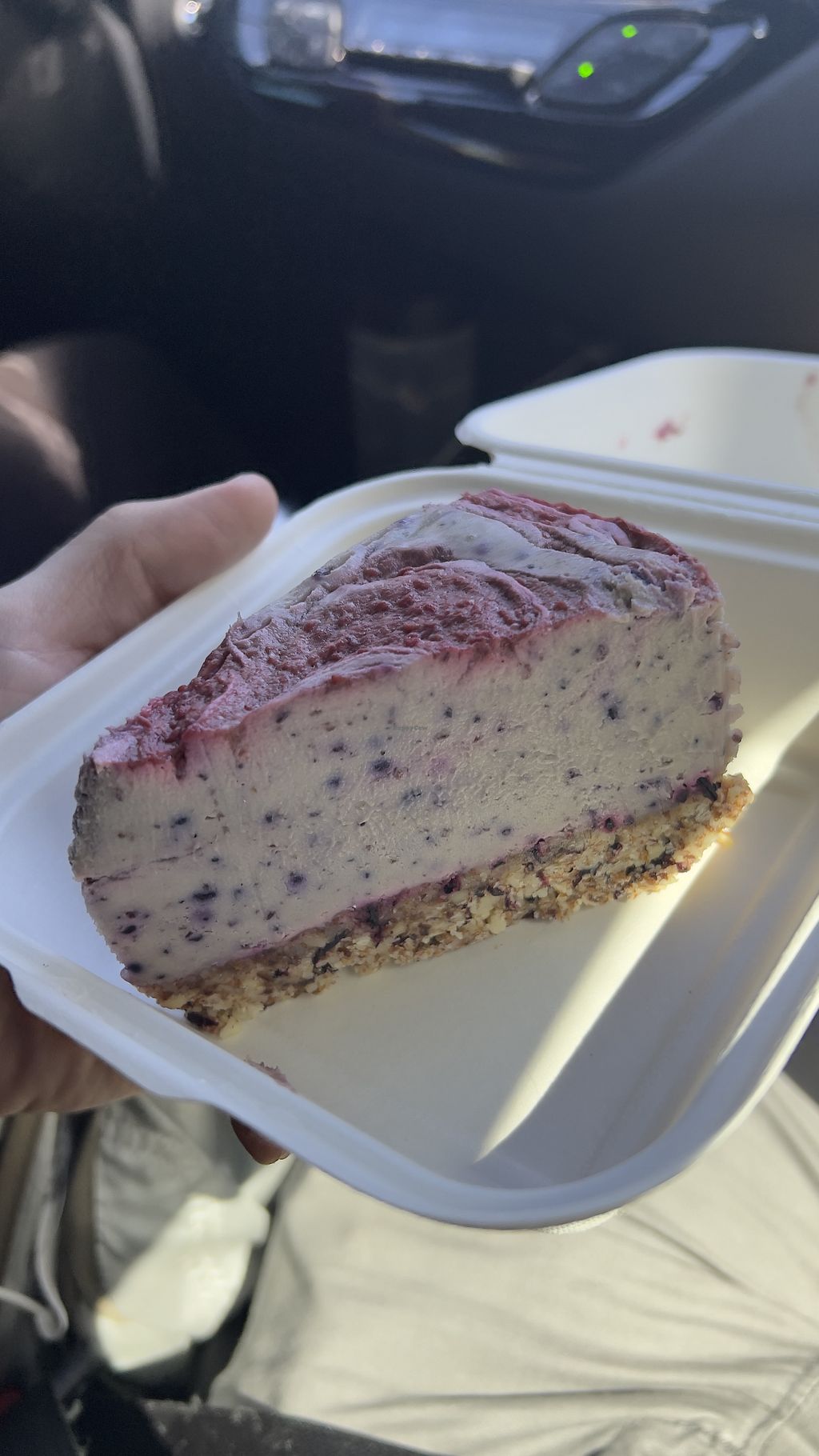 Ok so I ordered the burger and added cashew cheese, an Earl Gray Raspberry Swirl Cheesecake, and Mac and Cheese.