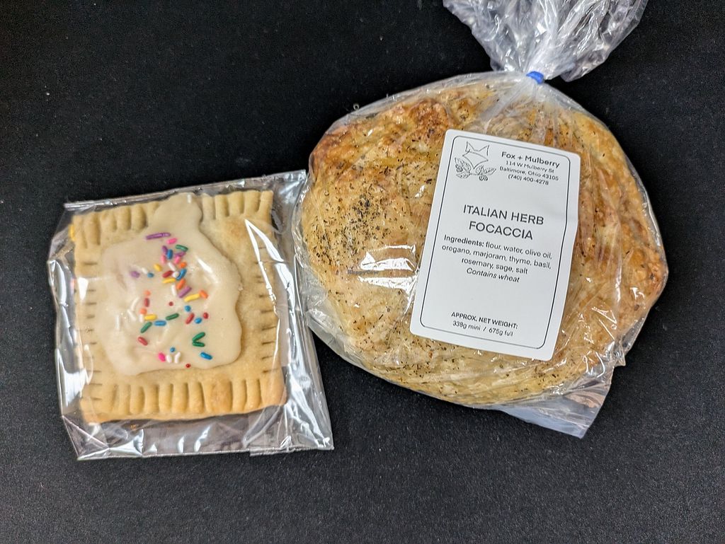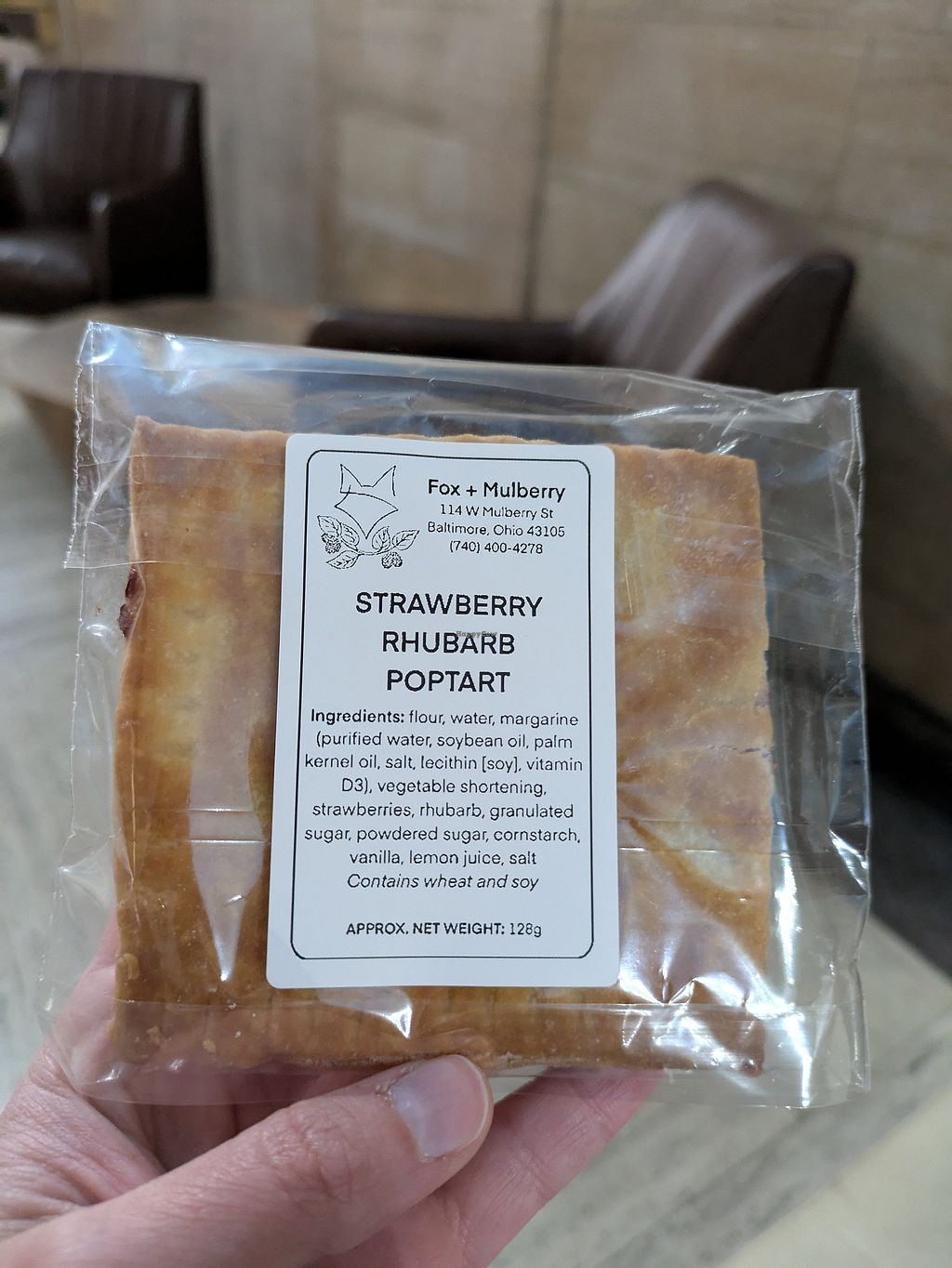 We have some amazing vegan pop tarts in Columbus, but the one from Fox and Mulberry was my all time favorite. They were at a local farmers market in Columbus, but the store front is in Baltimore, OH which must be a tiny town as I've never heard of it! I hope to visit some day. In addition to the incredible pop tart, I got a super tasty Italian herb focaccia which was also incredible - soft, moist, and not too dense. I highly recommend checking them out