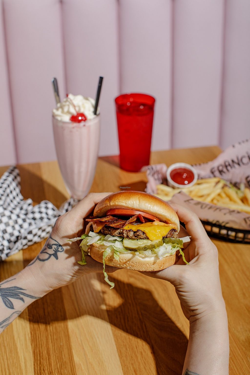Vegan burger joint offering items such as black bean burger, Impossible burgers, 'chicken' burgers, salads, cookie, milkshakes, nuggets, loaded fries and more. Open Mon-Sun 11:00am-9:00pm.