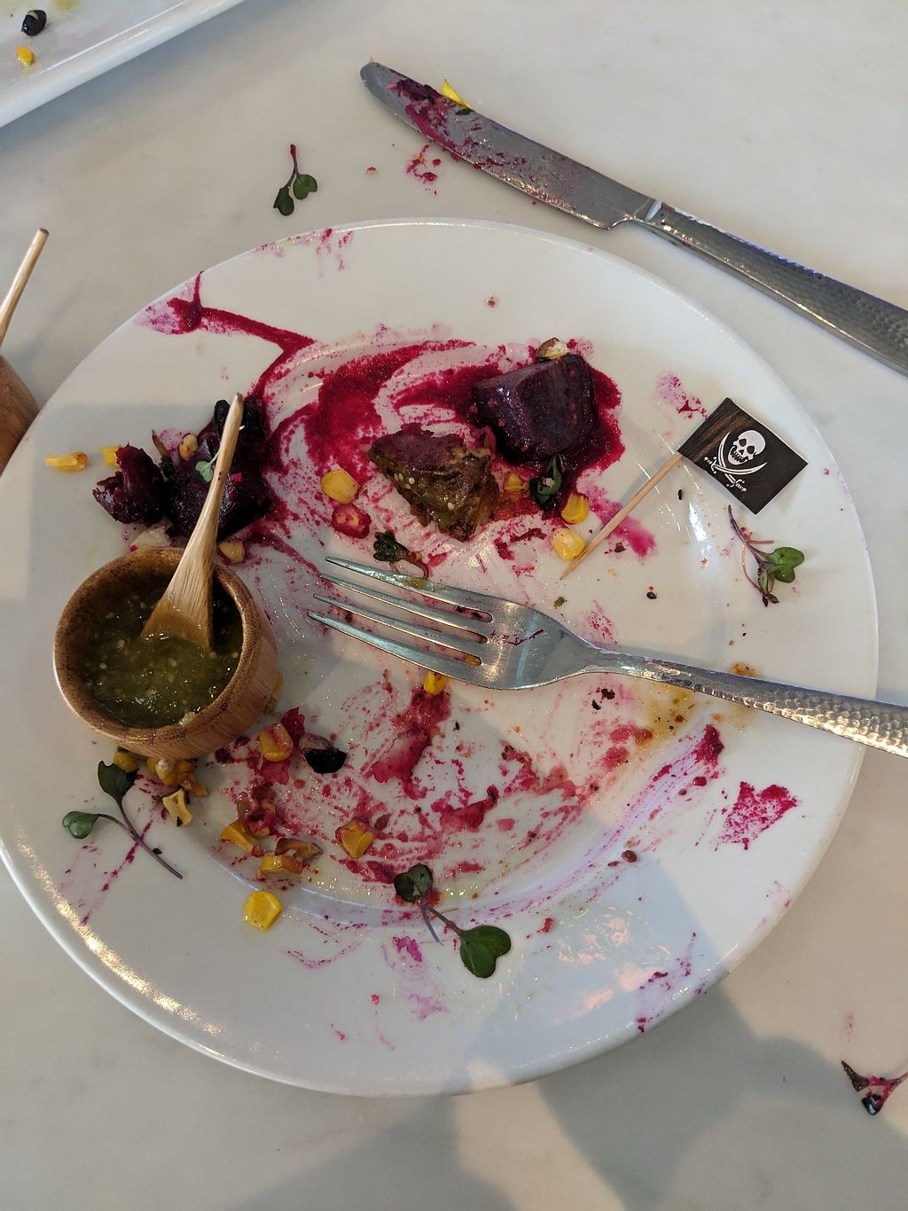 What was leftover after destroying the arepas, with hand made salsa!