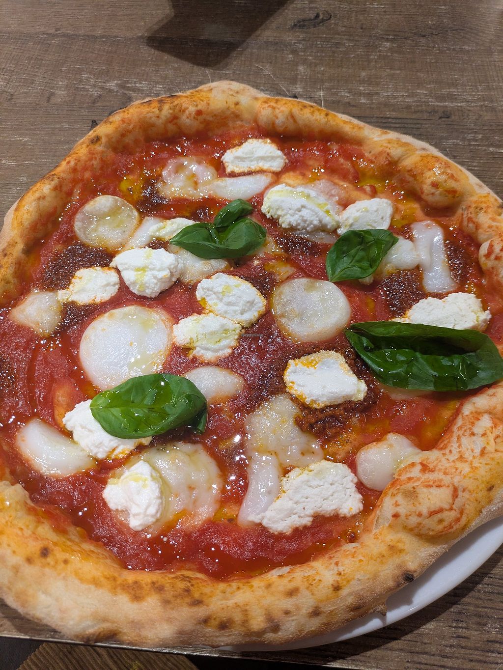 Vegan pizza with eggplant, smoked cheese, lentil sauce, and stuffed wi…