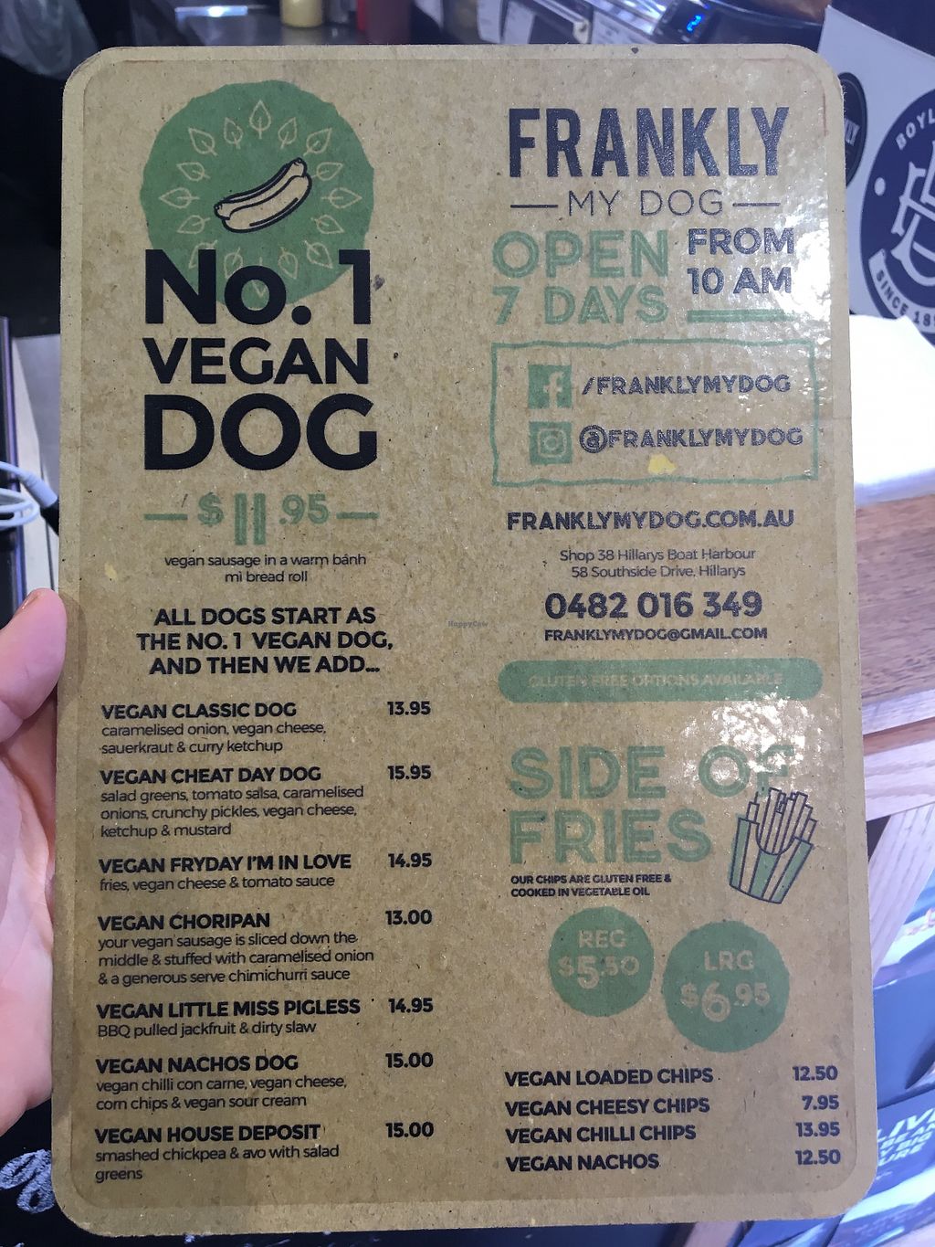 Love that this place has a separate vegan menu. Very friendly staff. Delicious food. Not cheap, but to be fair the portions are MASSIVE and very filling. Chips are vegan too (not cooked with meat) and were delish. Definitely worth a visit if you’re at Hillarys Boat Harbour. Pretty sure on some days they sell Two Fat Frenchie vegan donuts too but might be worth calling ahead to make sure.