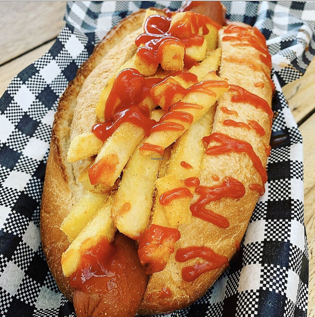 Serves meat, vegan options available. Hot dog stall with a vegan menu section consisting of seven hot dogs, nachos, fries, and loaded fries. Reported closed, Jan 2021.