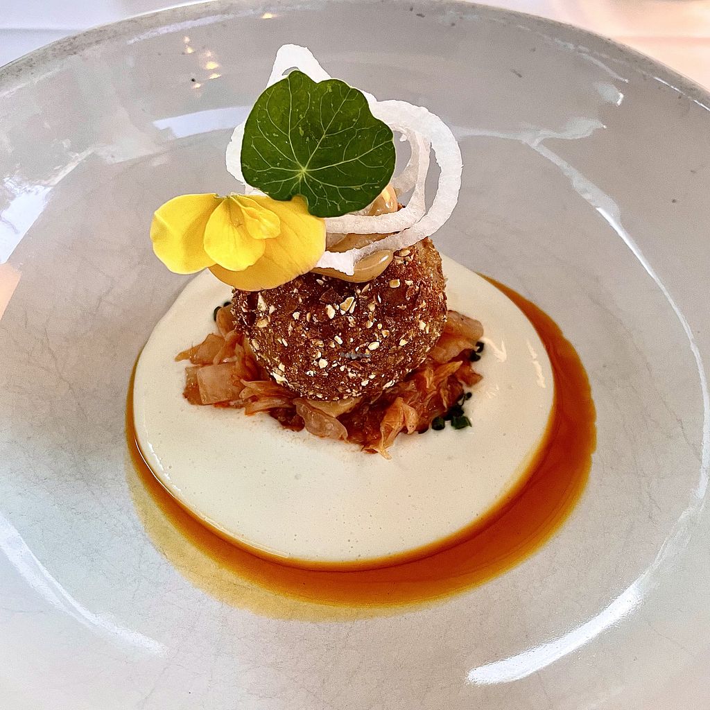 Lemon Pine Nut Raviolo with Scorched Cauliflower