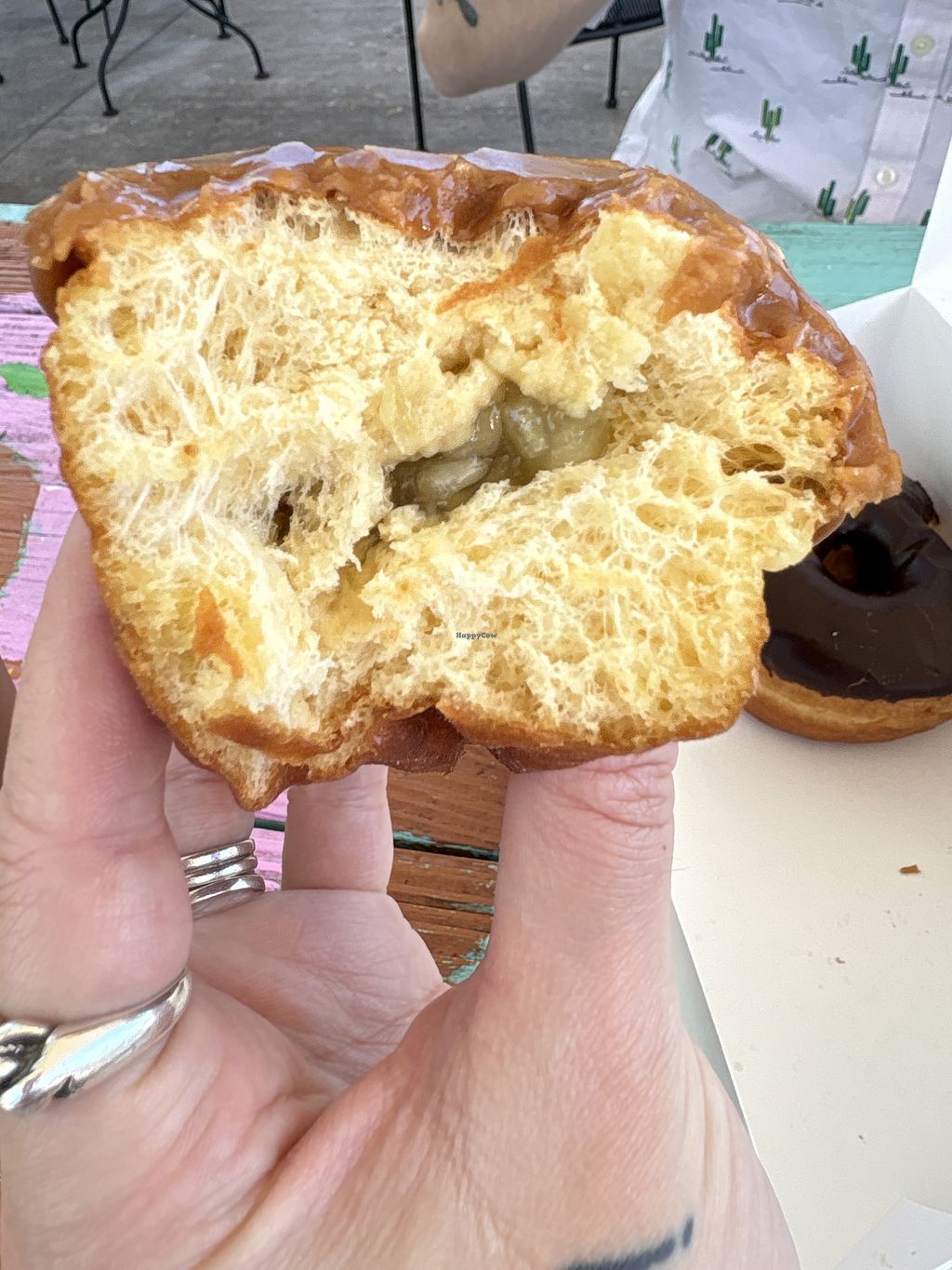 These donuts are fried, light, fluffy, and flavorful. We also order 2 oat milk lattes ( one hot and one iced). They were spot on! Would recommend. We were told they try to have at least 15 vegan options on any given day!