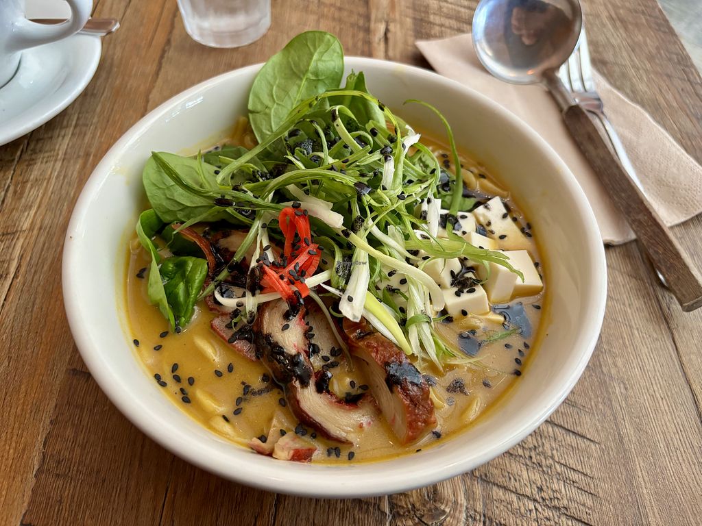 The curry ramen is so good, the sandwich tasted healthy and fresh. A lot of veggies. The cheese cake is very filling! Nice environment in the cafe.