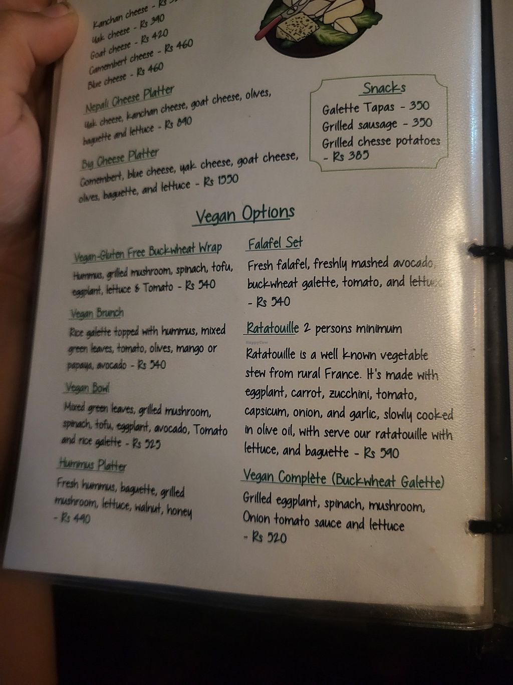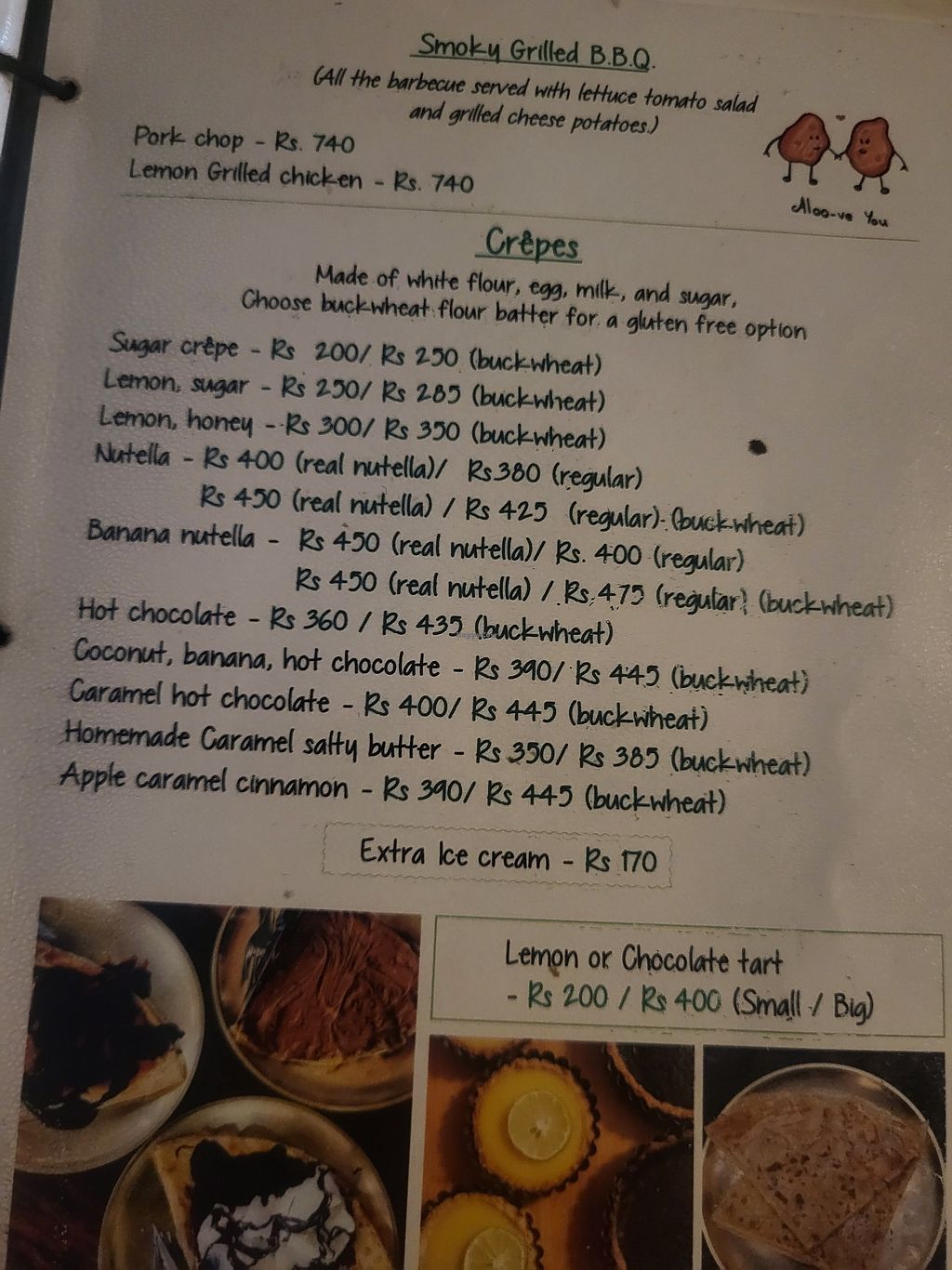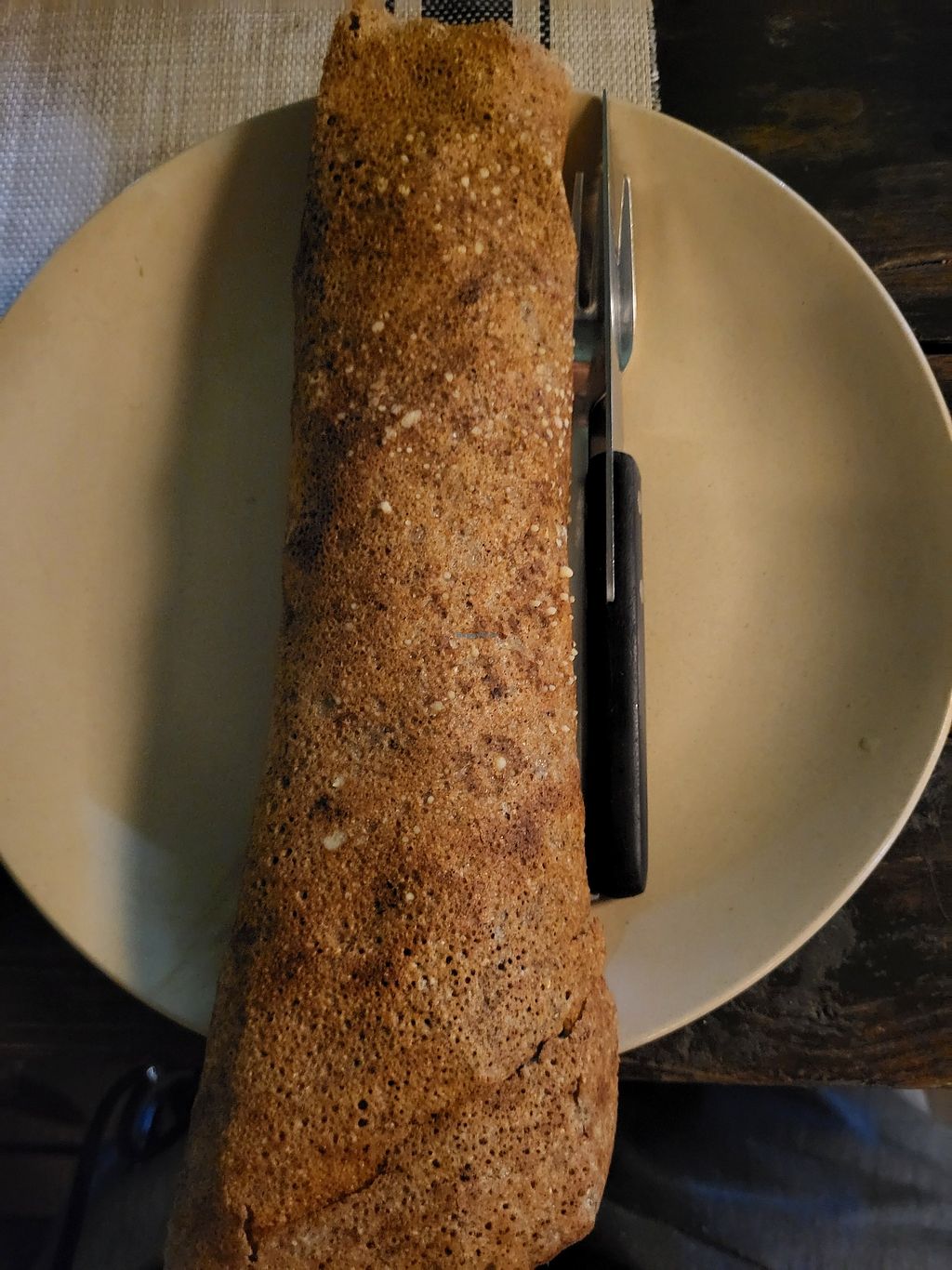 Hot chocolate buckwheat crepe and french press coffee with soy milk