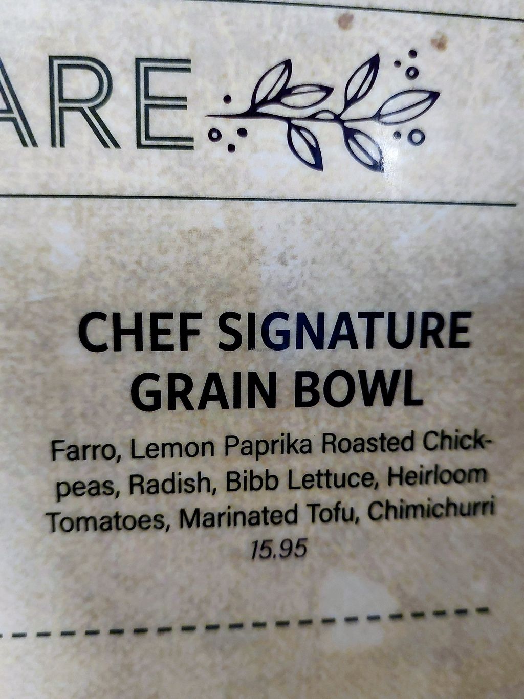Serves meat, vegan options available. American cafe offering vegan dishes and/or dishes that could possibly be made vegan may include a grain bowl, aveggie burger and a portobello sandwich. Open Mon 7:00am-3:00pm, Wed-Fri 7:00am-3:00pm, Sat-Sun 7:00am-4:00pm. Closed Tue.