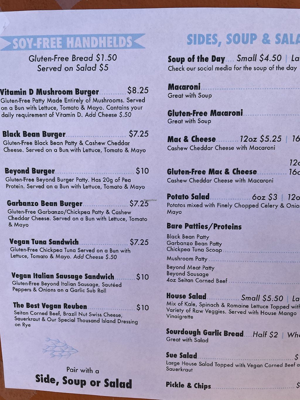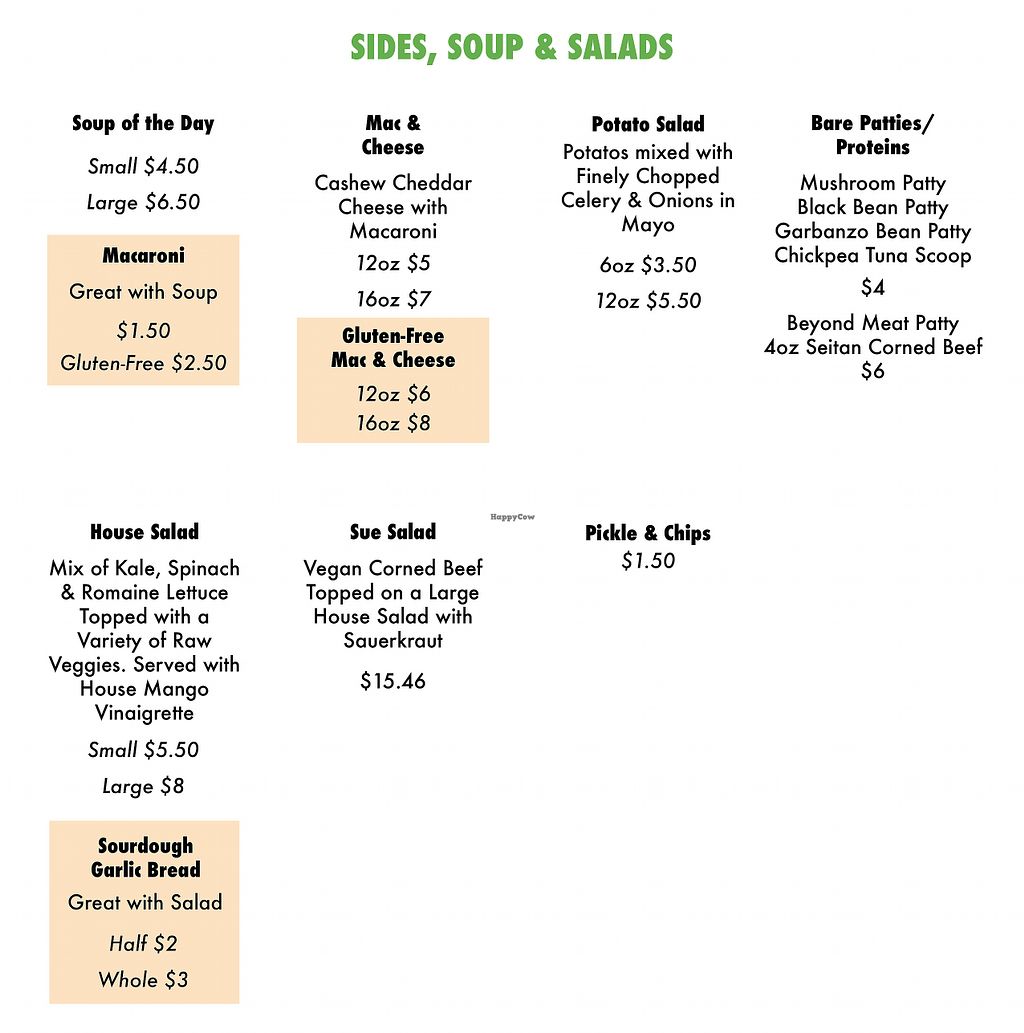 Sides soups and salads menu