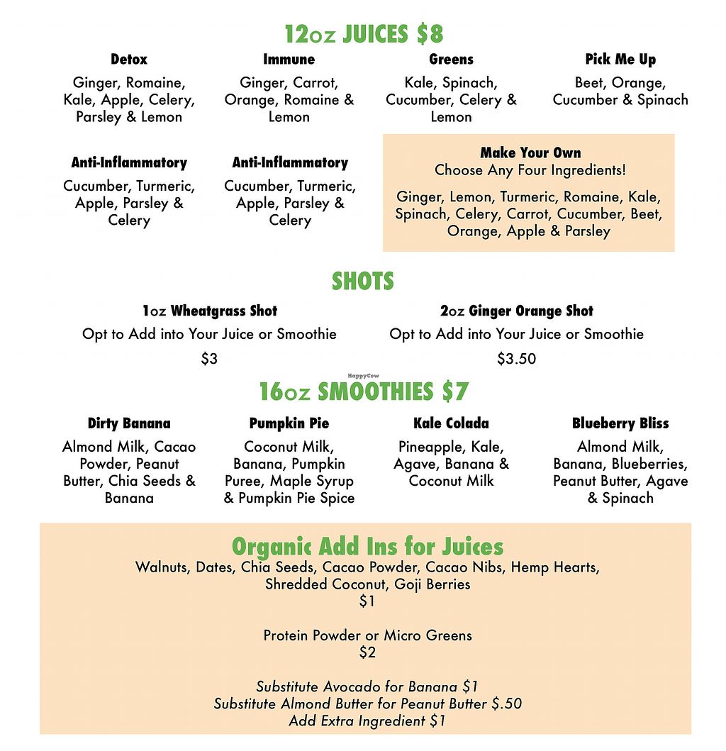 Juice and Smoothies menu