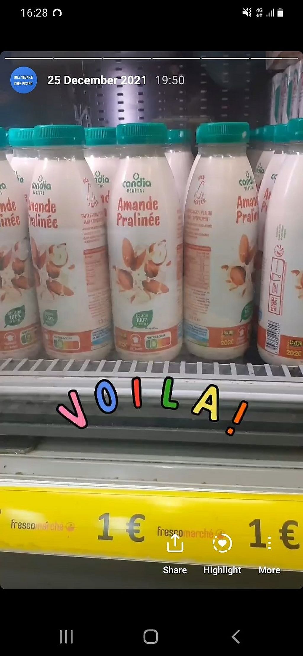 Il y a très souvent des boissons et desserts végétaux à tout petit prix dans les frigos
