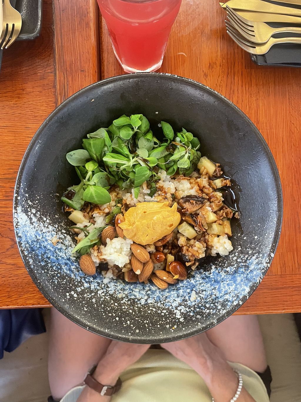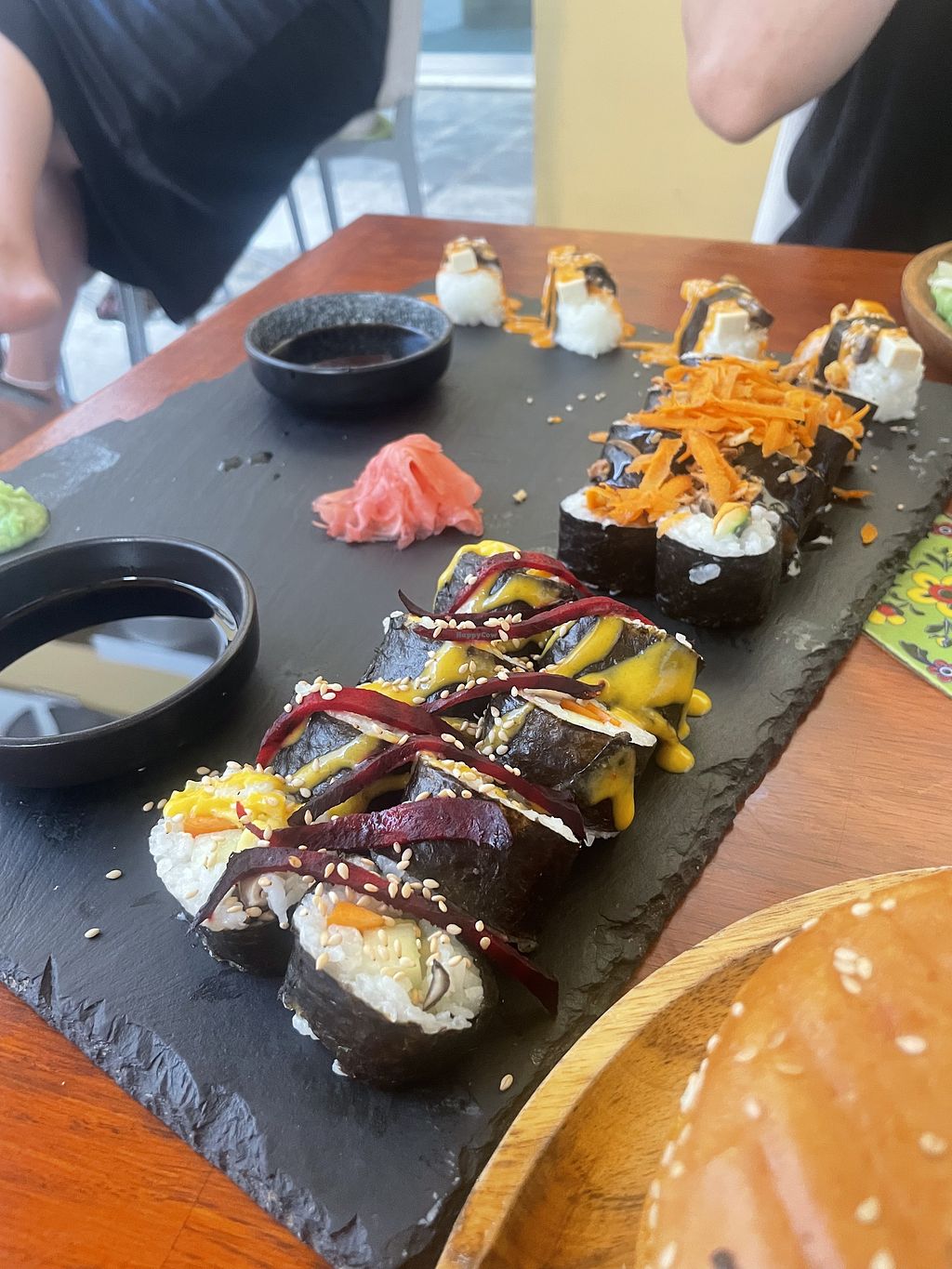 Some of the best vegan sushi I have had. There were many options of sushi to get that could be combined. They had some interesting vegan adaptations that I hadn’t seen before which I enjoyed. They also have vegan cocktails such as pina colada. They do offer some non-vegan milk, so just be careful. The seating is outdoors so there is a great atmosphere.
