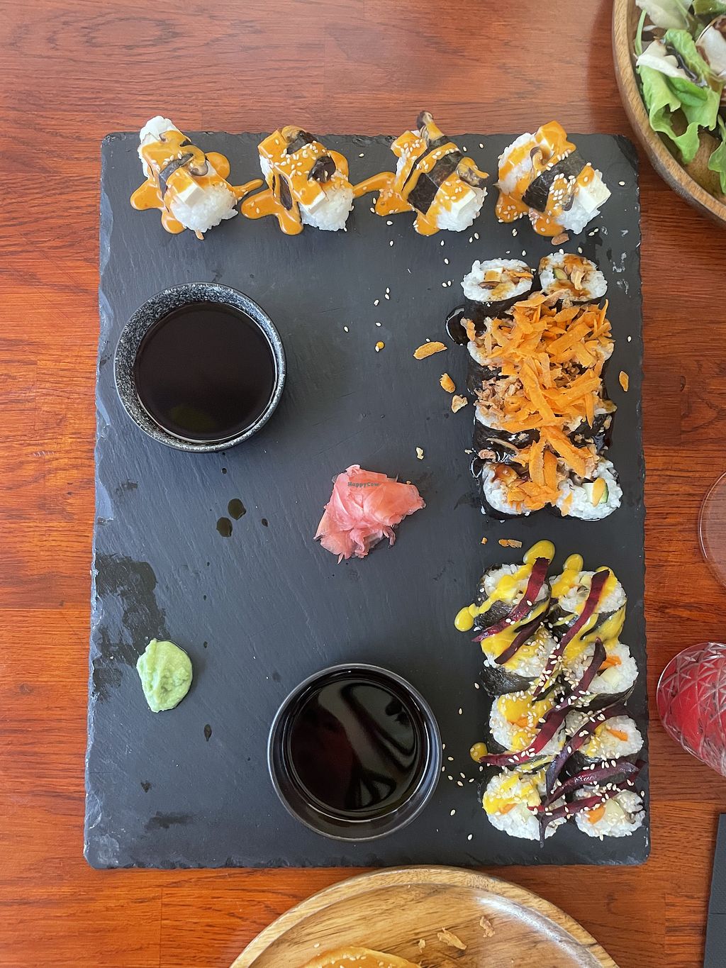 Smoothies were delicious, and the vegan sushi was handmade right in front of us!