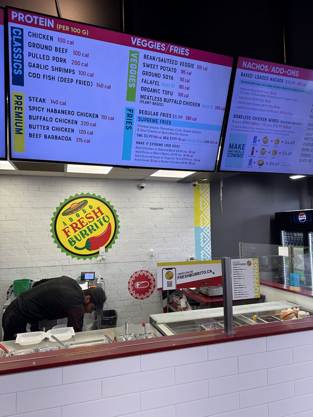 Serves meat, vegan options available. Fast-casual Mexican chain restaurant with vegan choices. Menu includes burritos, bowls and tacos that can be made with tofu, beans, fried sweet potatoes, sauteed vegetables and soy grounds. Specify vegan when ordering. Open Mon-Sun 11:00am-11:00pm.