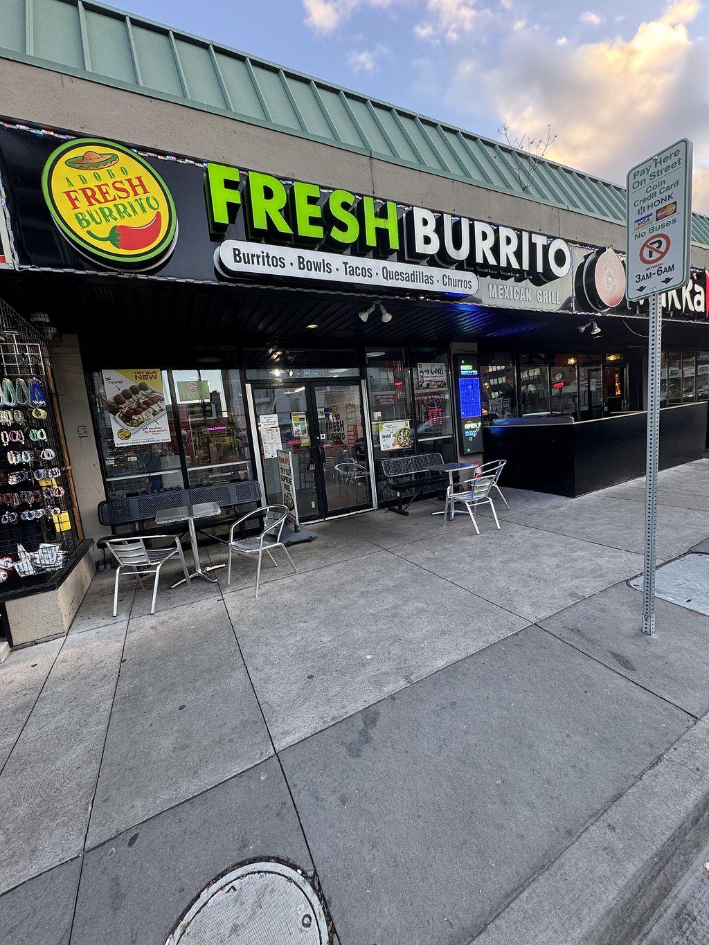 Serves meat, vegan options available. Mexican chain offering vegan tacos, bowls or burritos with choice of protein such as organic tofu, ground soy meat, falafel or meatless buffalo chicken. Open Mon-Thu 11:00am-2:00am, Fri-Sat 11:00am-3:00am, Sun 11:00am-2:00am.