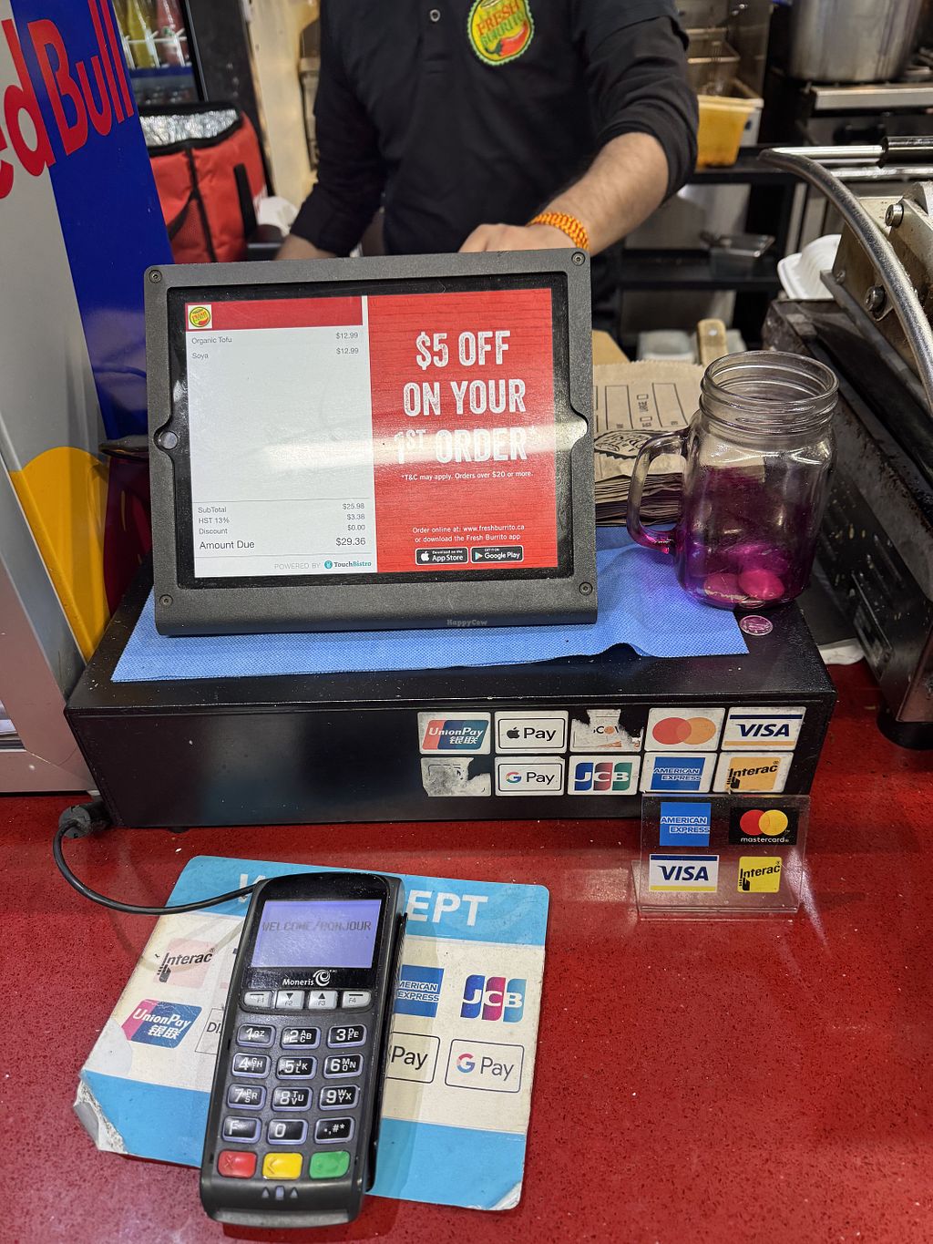 Our burritos of Organic Tofu and Soy Grounds was very tasty and made just the way we like it. The salsas good and the protein nice. The toppings plenty and warmed perfectly.