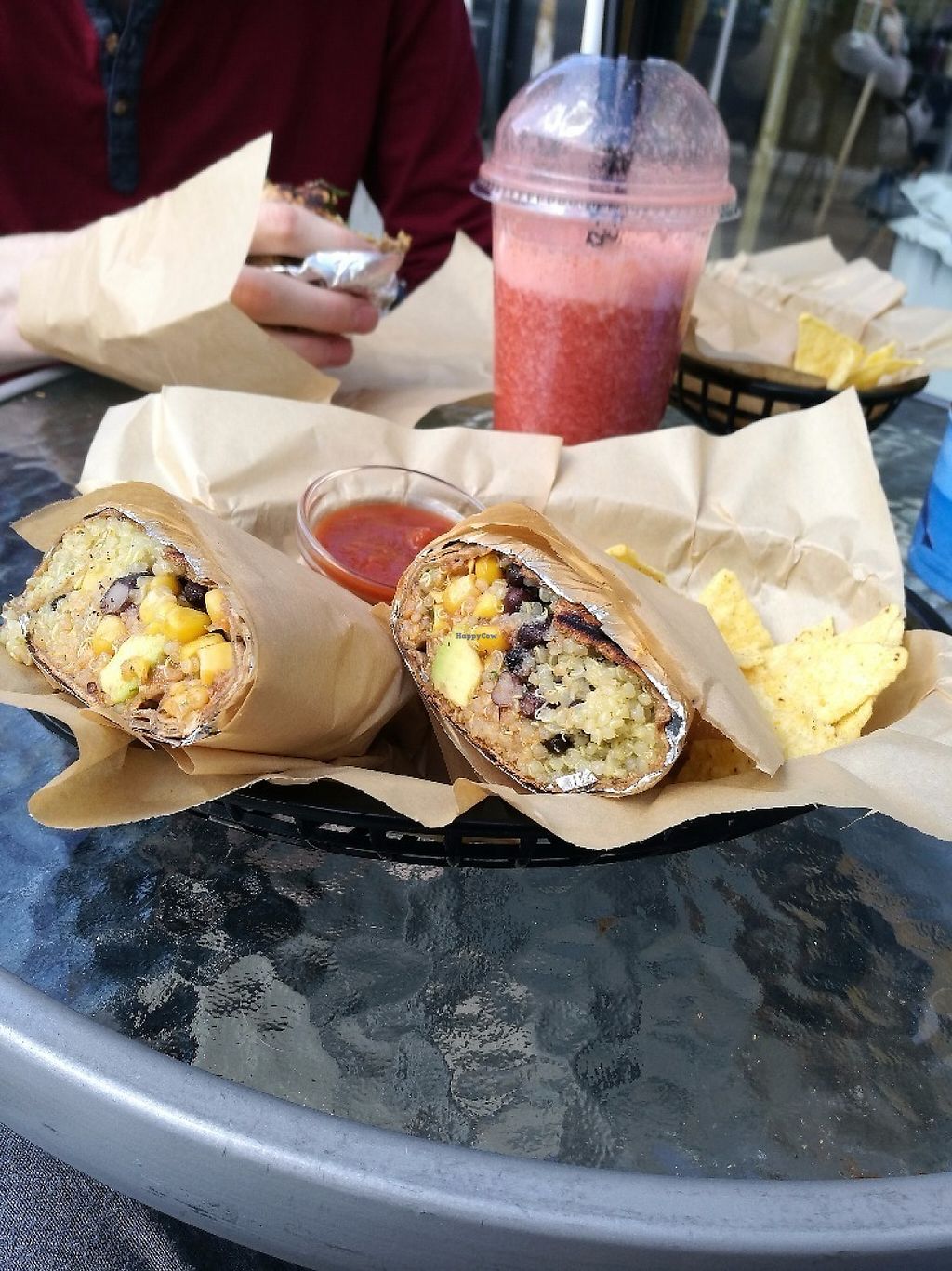 Vegan wrap with nachos and juice