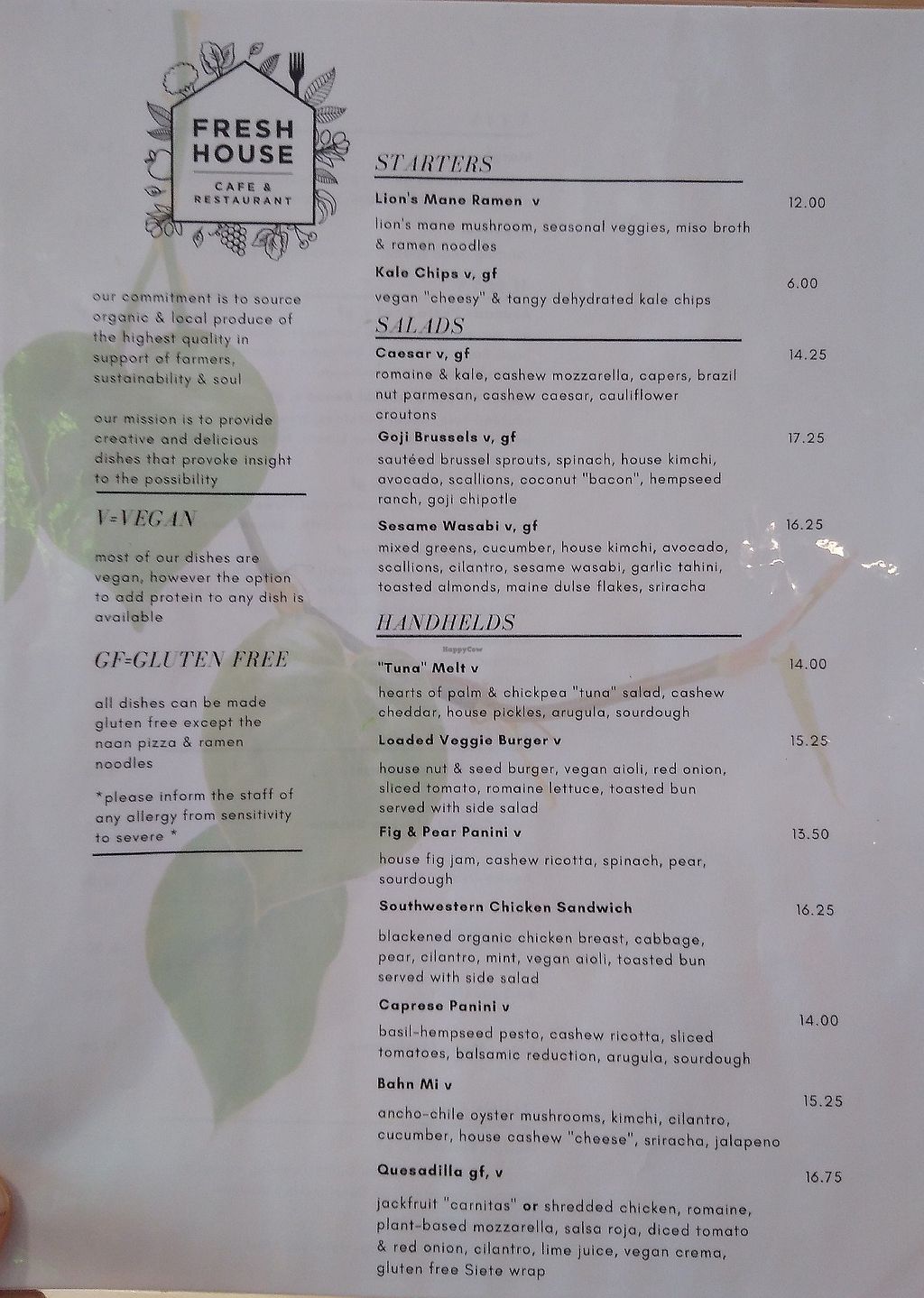 while fresh house does offer organic salmon and chicken add ons, every single item is 100% vegan or has a vegan option. they have incredible non-meat protien options like lions mane, oyster mushrooms and jackfruit and many of the meals feature quinoa, rice, lentils beans and nuts. there are no dairy products at all and no soy. 100% of ingredients are organic and the highest quality possible