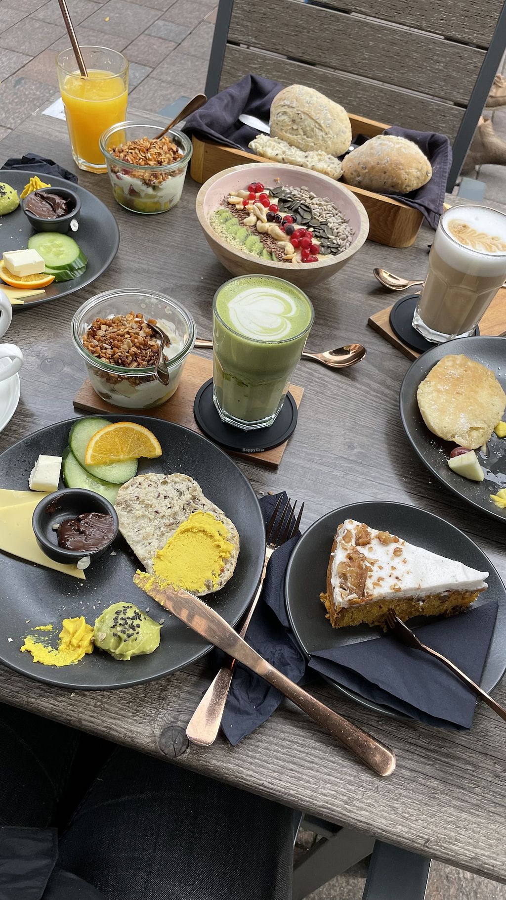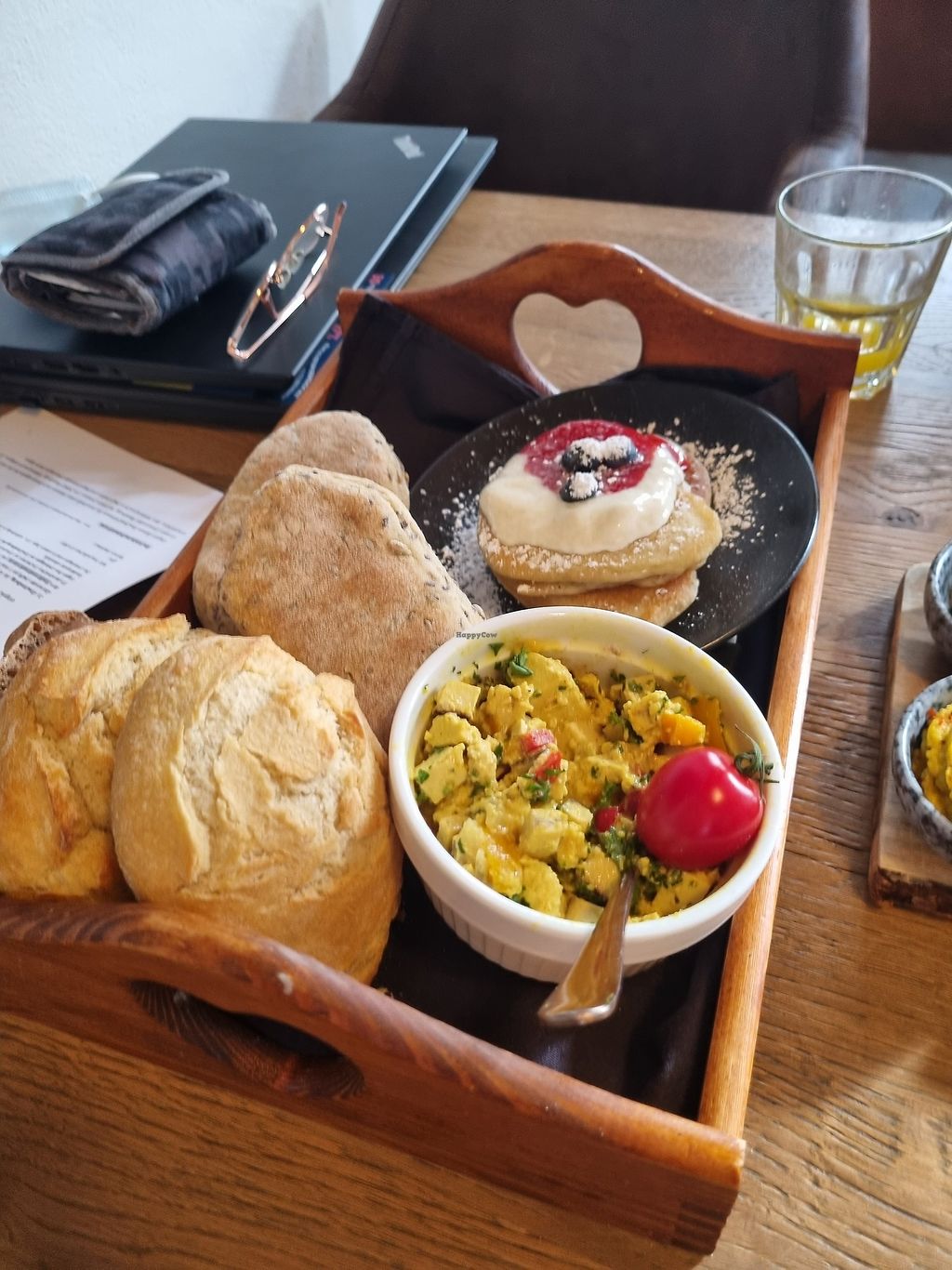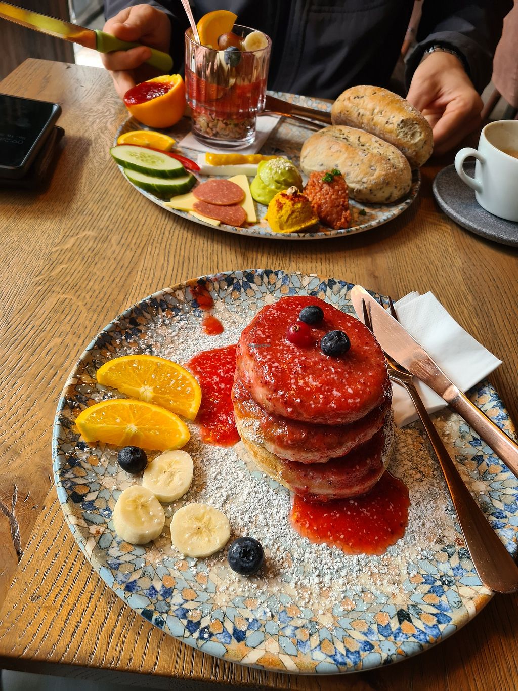 Read moreAuch das eine vegane Frühstück mit den Brötchen war perfekt. Die beiden süßen Sachen waren... ausbaufähig. Die Idee war jeweils super, aber nicht zu Ende gedacht. Die Acai Bowl war echt gut vom Geschmack her, aber recht flüssig und bis auf die 2 Löffel Granola hat einfach was ergänzendes wie Sojajoghurt oder ne andere Komponente gefehlt, sodass es mir ab der Hälfte vorkam wie eine Schüssel Marmelade essen. Die Pancakes waren auch an sich super fluffig und gut, aber auch hier, 3 Esslöffel Erdbeersoße und 3 Mini Scheiben Banane reichen halt nur bis zur Hälfte und dann sitzt man auf dem trockenen. Wenn das beides noch abgerundet würde dann wären es perfekte Frühstücke, so reicht es nur für ein ok.