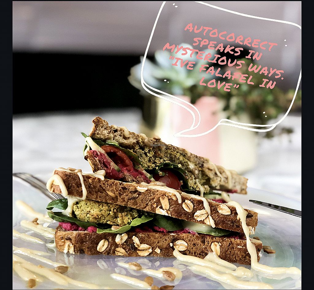 Baked falafel sandwich. “Vegan bread”