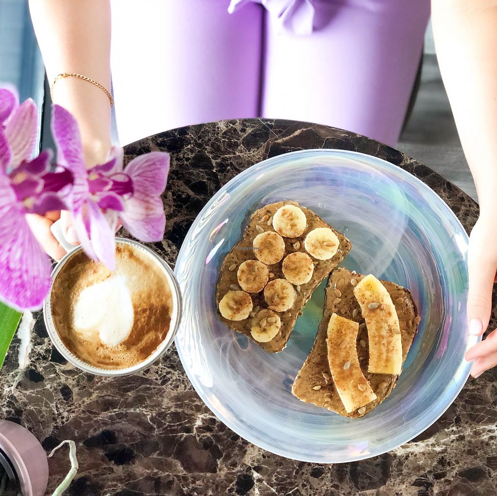 Kraving nuta vegan bread toasted w/ banana slices choice of nut butter…