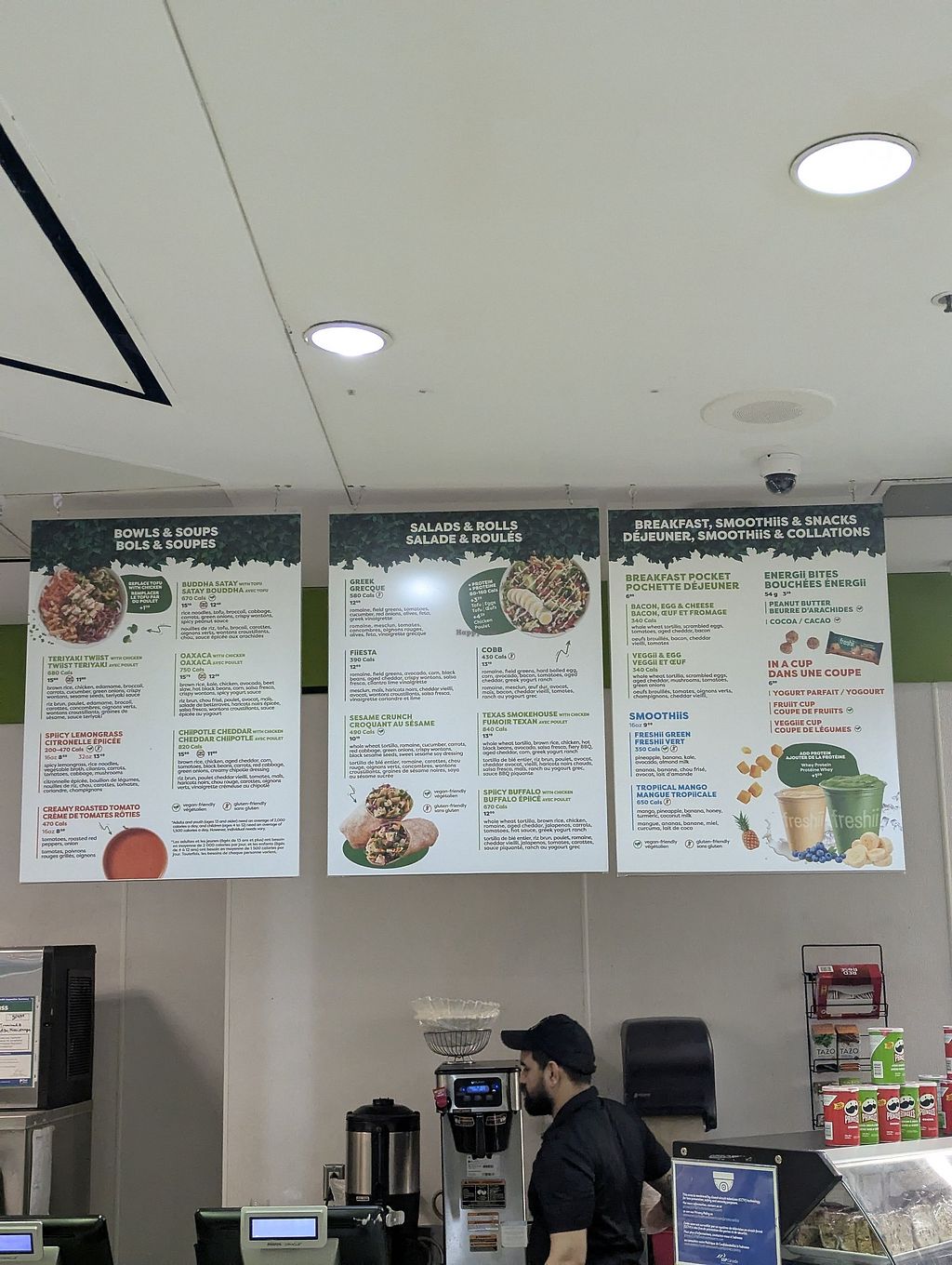 It was an early flight and wanted to get food for the trip. I stopped at Freshii and was told no bowls are served at the moment. The only available vegan option was the sesame crunch wrap