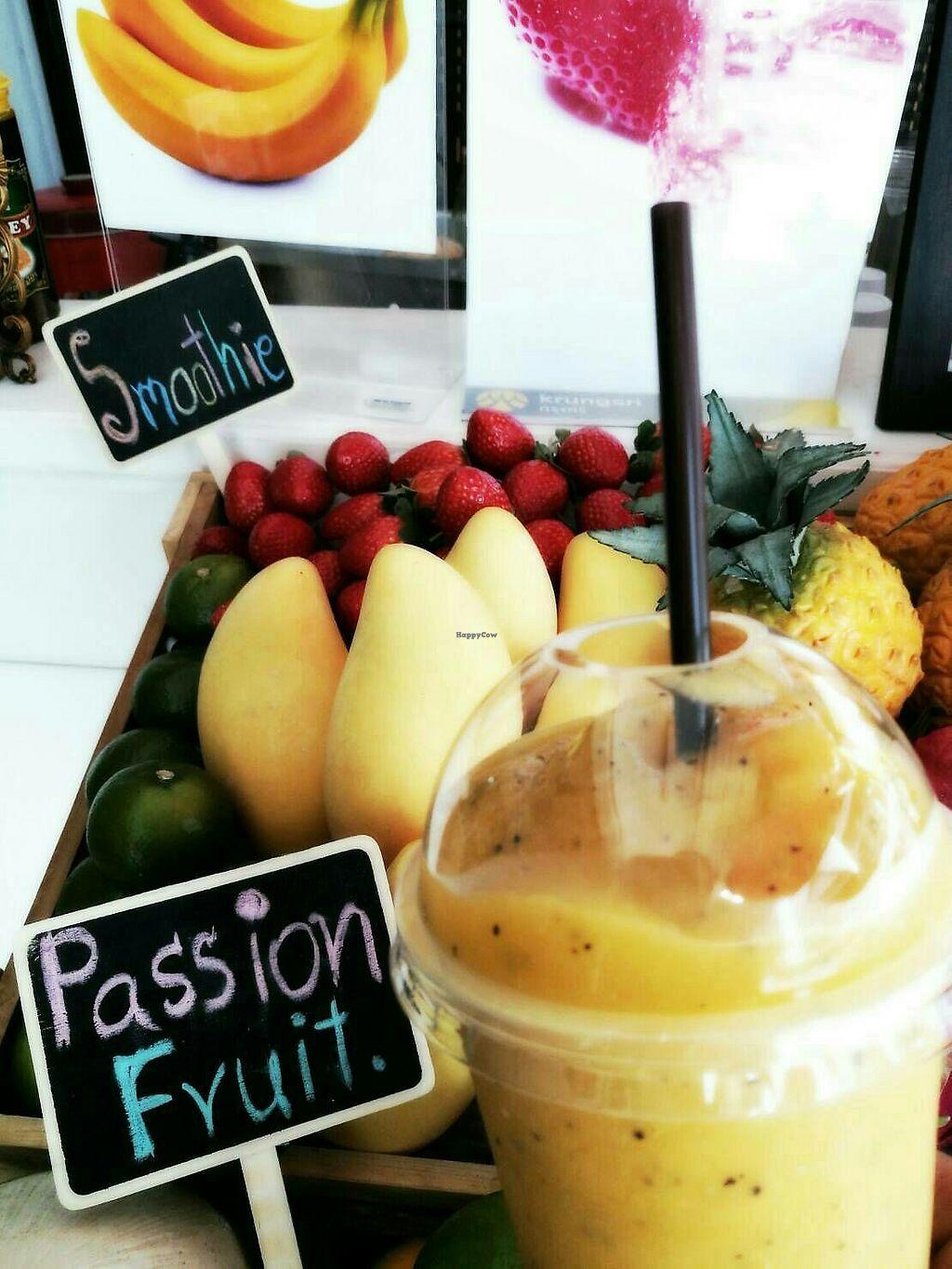 Pros: Great smoothies & fruit for any purpose., Good selection of Thai food