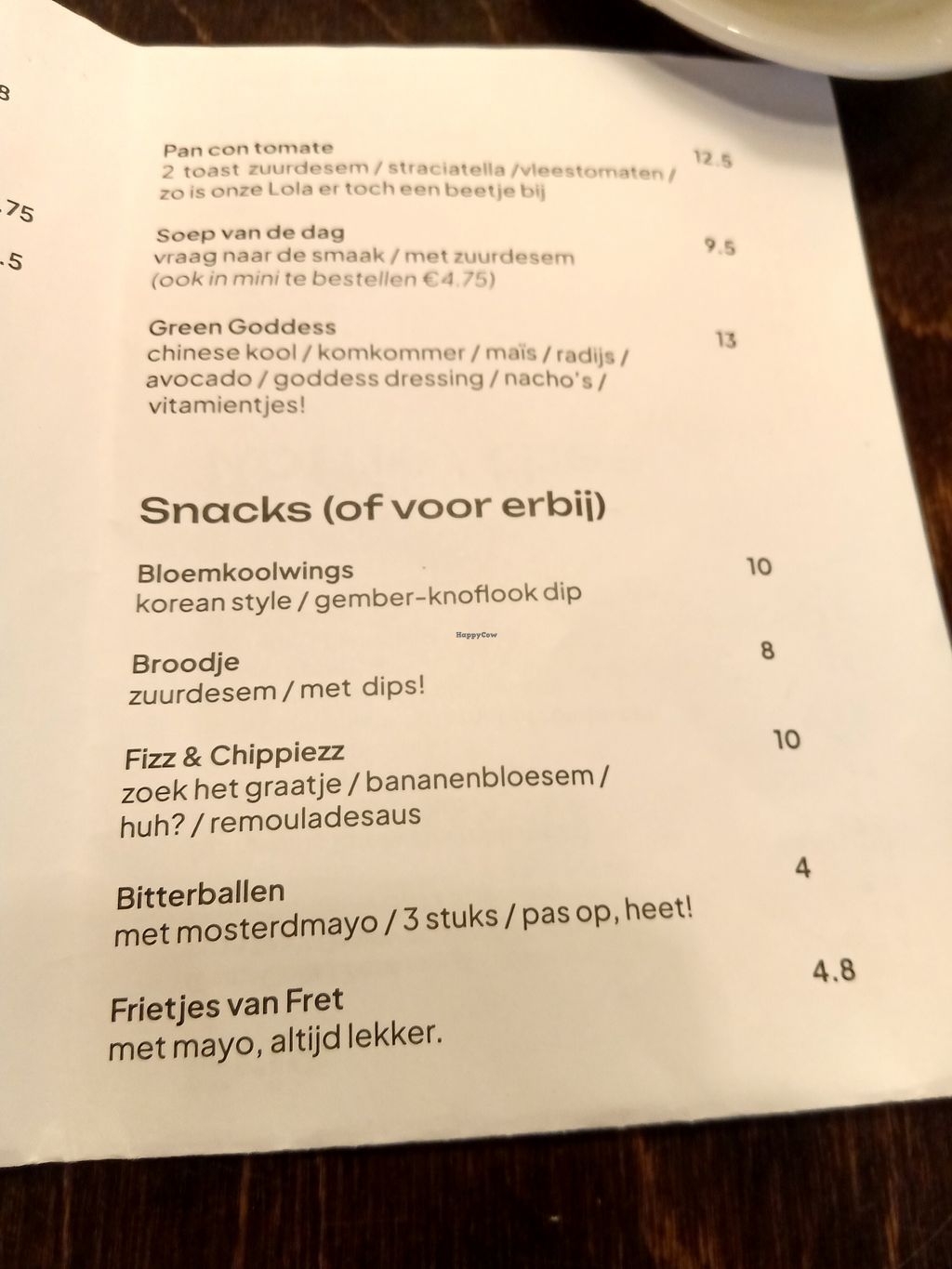 Cons: Steep stairs to the bathroom , Seems to hide being vegan?, The menu is a bit cryptic, even if you speak Dutch