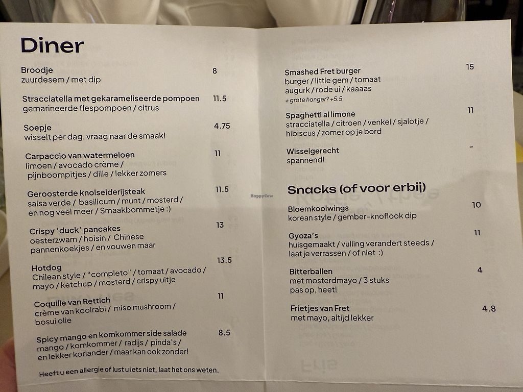 Ik ben nu een aantal keer bij Fret geweest en het eten is elke keer weer heerlijk. Elk gerechtje is vol van smaak en goed bereid. Personeel is ook super vriendelijk en behulpzaam. Echte aanrader, 10/10. Zowel leuk voor lunch, diner en borrelen.