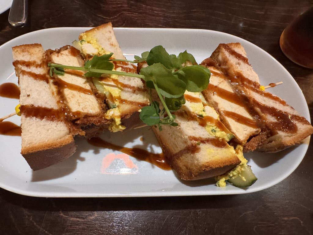 I tried soup of the day (celery and fennel puree with radish sprouts), katsu sando (sandwich with breaded tofu and “egg” salad) and matcha cappuccino. All of it was excellent. The portions were not very big but I found them appropriate for the price. The staff was very forthcoming and attentive. Lovely outdoor seating area in a small square. I’d definitely come again. Just didn’t like that they don’t advertise as vegan or plant-based. Probs a lot of accidental guests didn’t even realize.