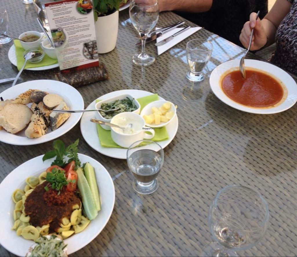 Fresh tomato based tortellini pasta, fresh bread, seasonings. Not show…
