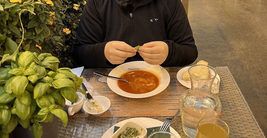 Fresh basil on the table + they brought me vegan butter & sour cream
