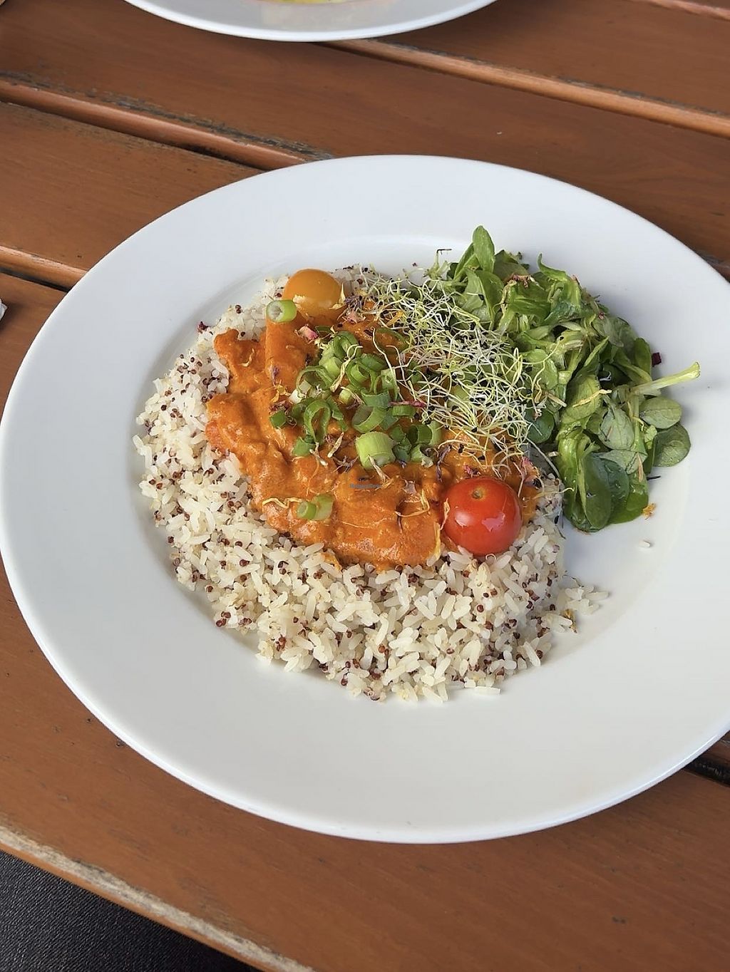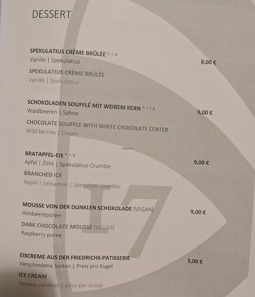 You currently have the choice between 1 starter soup, 2 main dishes and a dessert.