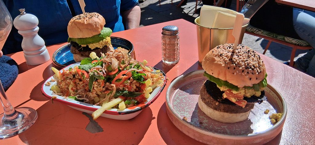 Vegan brunch (toast, maple beans, haggis, avocado, tomato, spinach, mi…