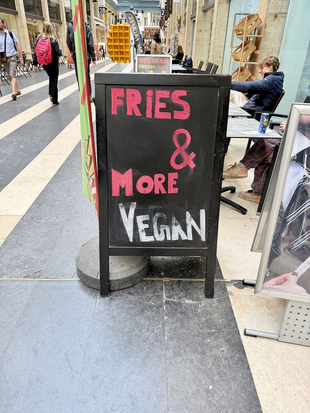 I love this place so much that it basically feels like a second home for me in the city. I always get fries and a waffle and it is truly the best I’ve had in Brussels. I also really like that there’s a place to sit unlike another vegan waffle place in the center. The man that usually works there is also so kind and I always look forward to seeing him. Highly recommend!