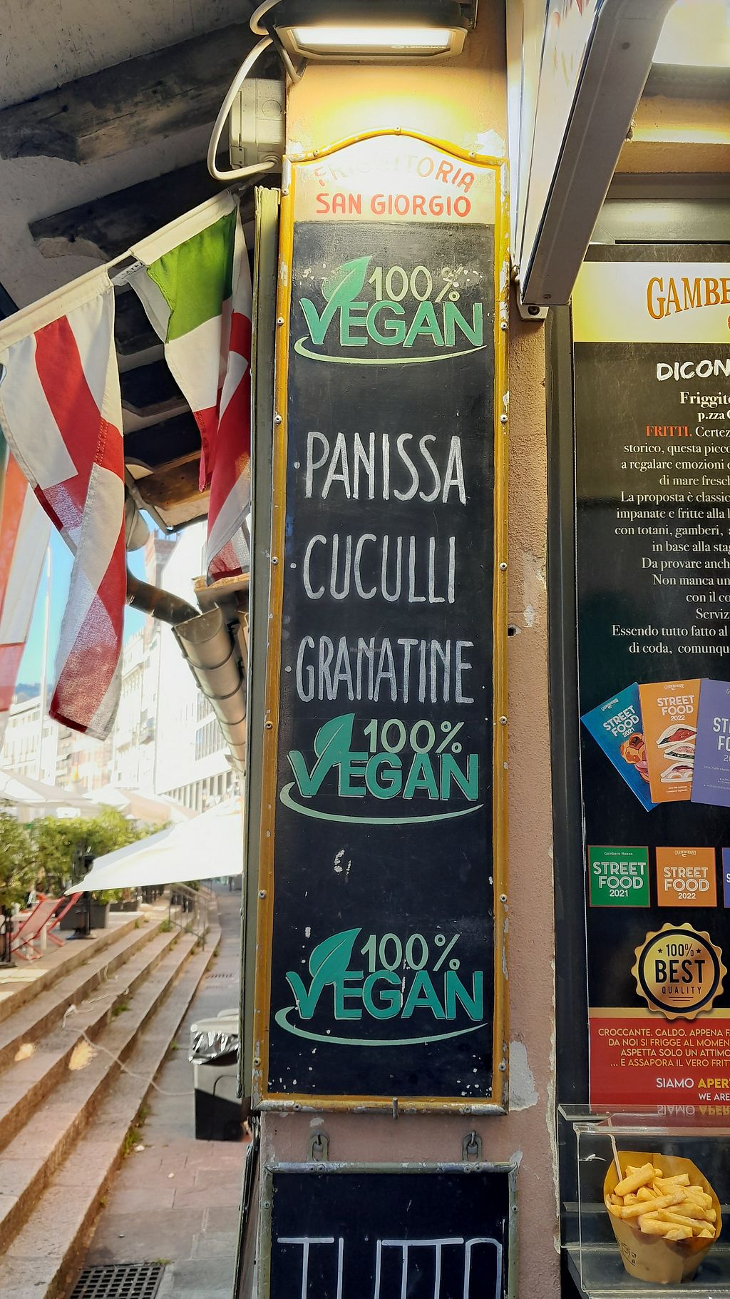 Serves meat, vegan options available. Italian fast food stall selling a few vegan snacks such as fries, granatine liguri, cuculli and panissa. Open Mon 11:00-15:00, Mon-Fri 18:30-20:30, Tue 10:00-15:00, Wed-Fri 11:00-15:00, Sat-Sun 11:00-20:30.