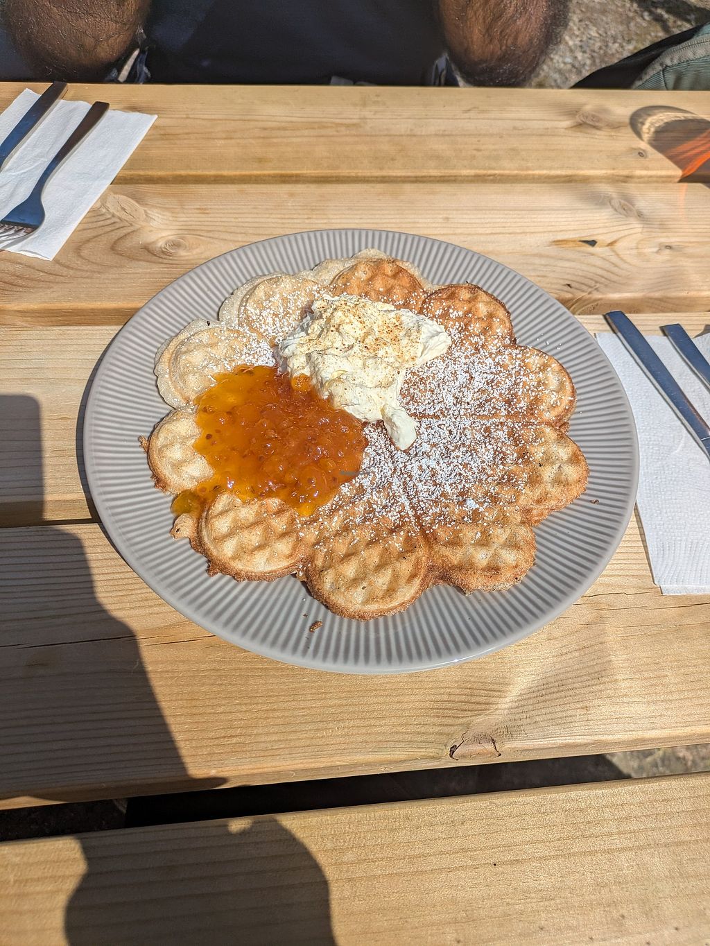 We tried the vegan waffle with cloud berry jam and vegan cream and it was really good, crispy and soft.