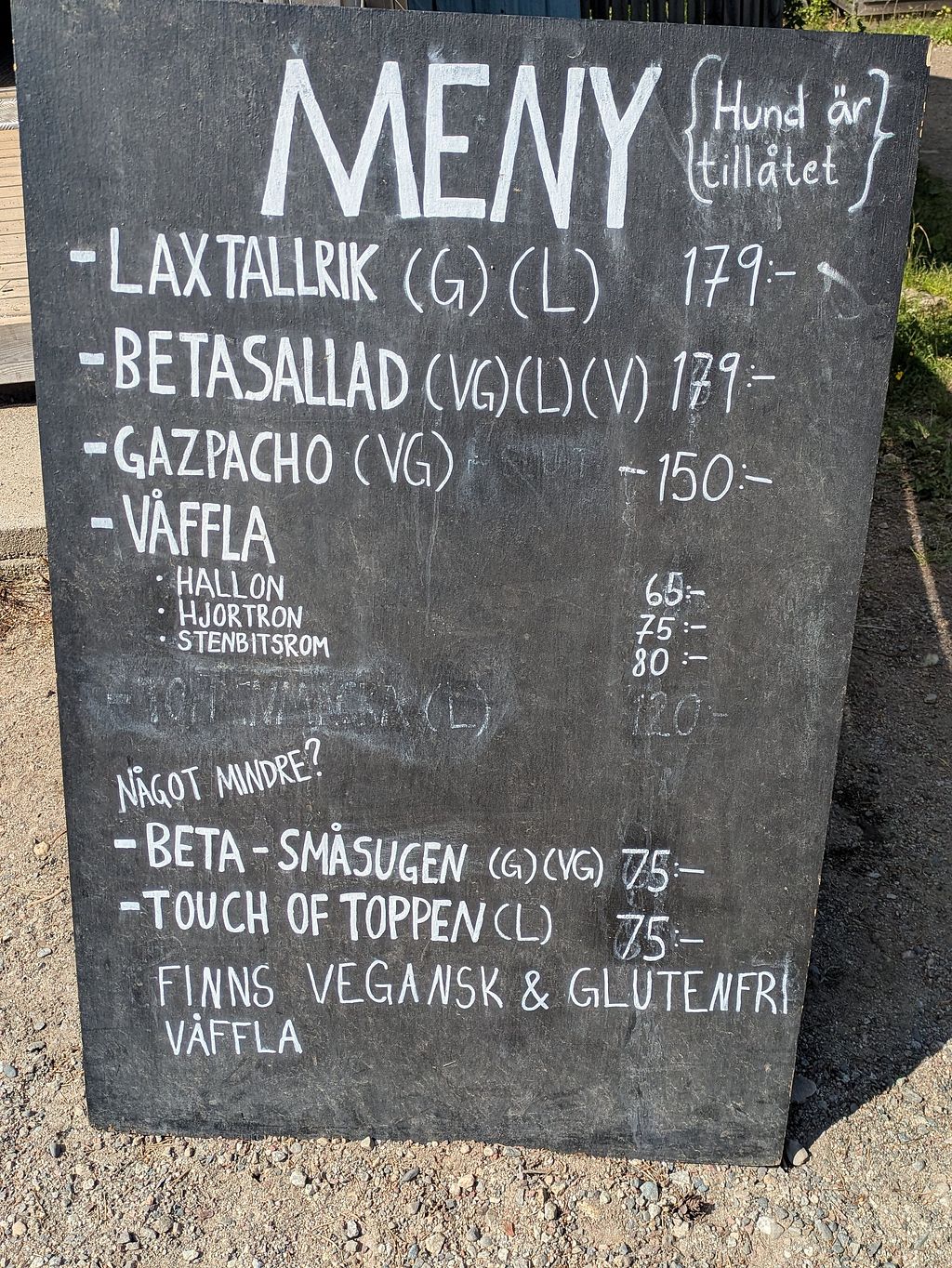 Serves meat, vegan options available. Restaurant and café located on top of Skuleberget, accessible by hiking or the Via ferrata. Offers vegan waffles, soups, a vegan stew, and a vegan sandwich. Provides a scenic view over Höga Kusten. Please note that many businesses in Sweden are cashless. Open Mon-Sun 11:00-16:00. Summer opening times.