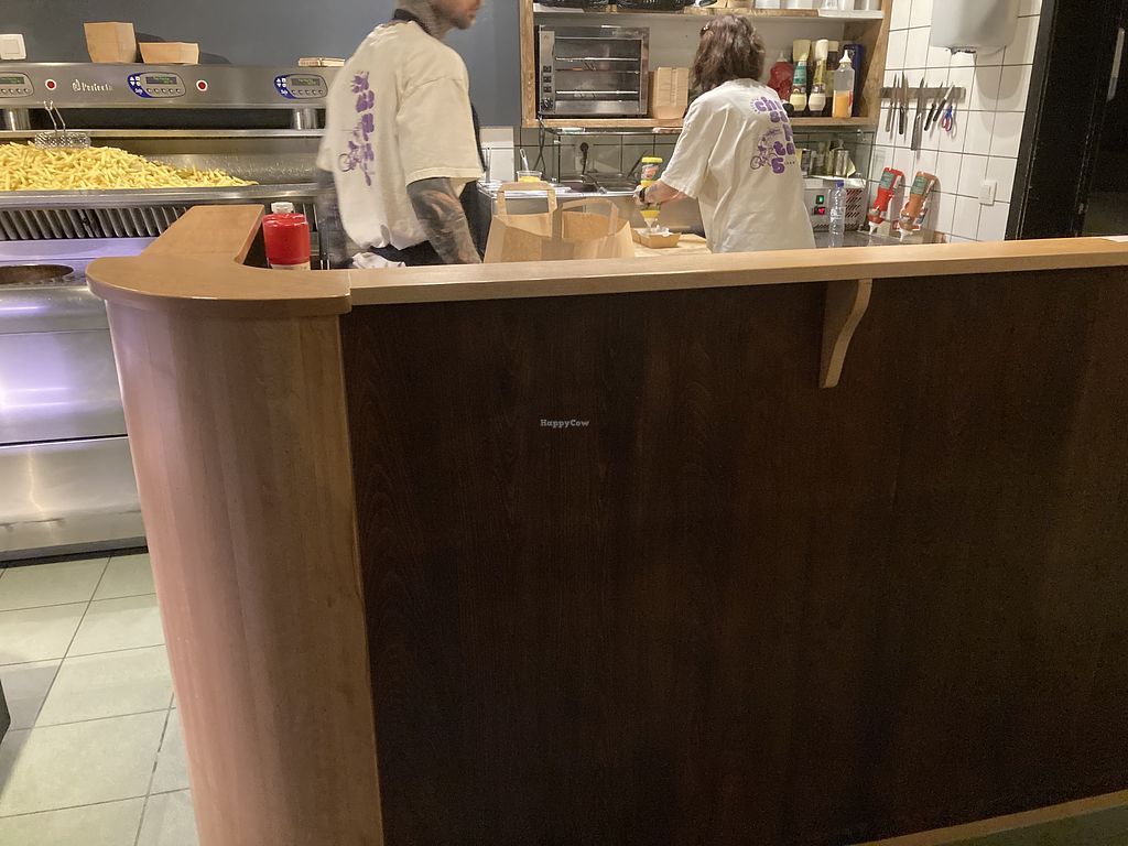 Serves meat, vegan options available. Restaurant with a focus on French fries. Serves labeled vegan burgers, fried chicken, nuggets, falafel, cheese crochets and more. Reported to use a separate fryer. Open Tue-Fri 17:00-22:00, Thu-Fri 11:30-14:00, Sun 17:00-22:00.