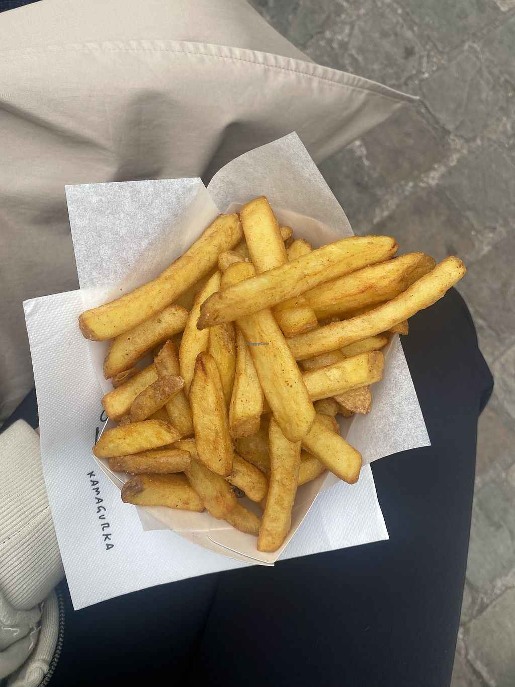 Honestly some of the best fries I’ve had in a while! Like everyone else has said, super crispy on the outside and fluffy on the inside. I do wish they had more vegan sauce options, but for a not fully vegan establishment, the two we have are great! Ketchup is really nice and the pickle sauce is fun, bright, and sharp - a perfect snack as you’re exploring Brussels😄