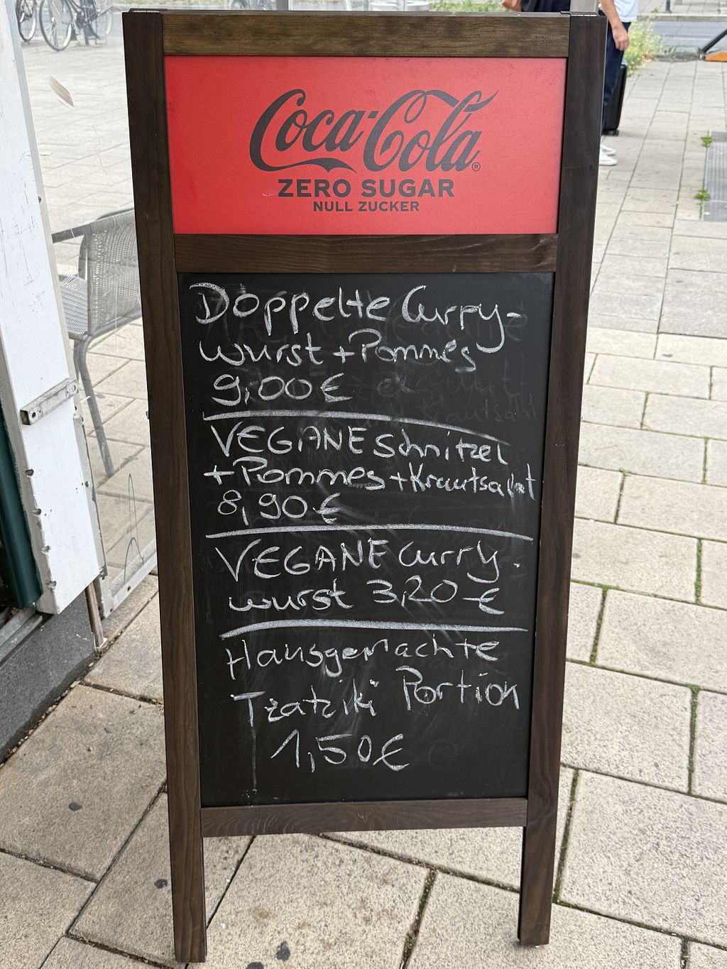 Klassische Imbiss-Leckereien, aber in vegan! Ich hatte eine Currywurst mit Pommes und Mayo, sehr lecker, super freundliches Personal und offen für Vorschläge!